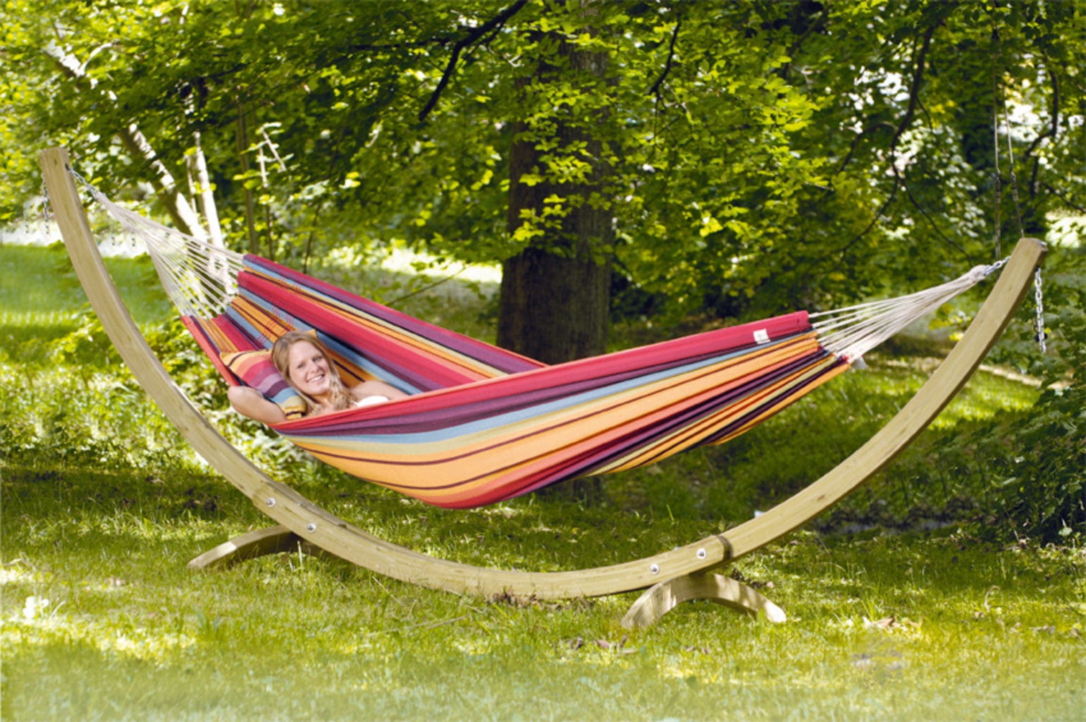 Hustá tkanina s 400 g/m² vydrží zaťaženie až 200 kg, takže si hojdaciu sieť môžete užívať aj vo dvojici. Ručne tkané a dvakrát 5-krát prešívané očká tvoria pevný základ pre množstvo závesných šnúr a zaručujú výnimočnú stabilitu.