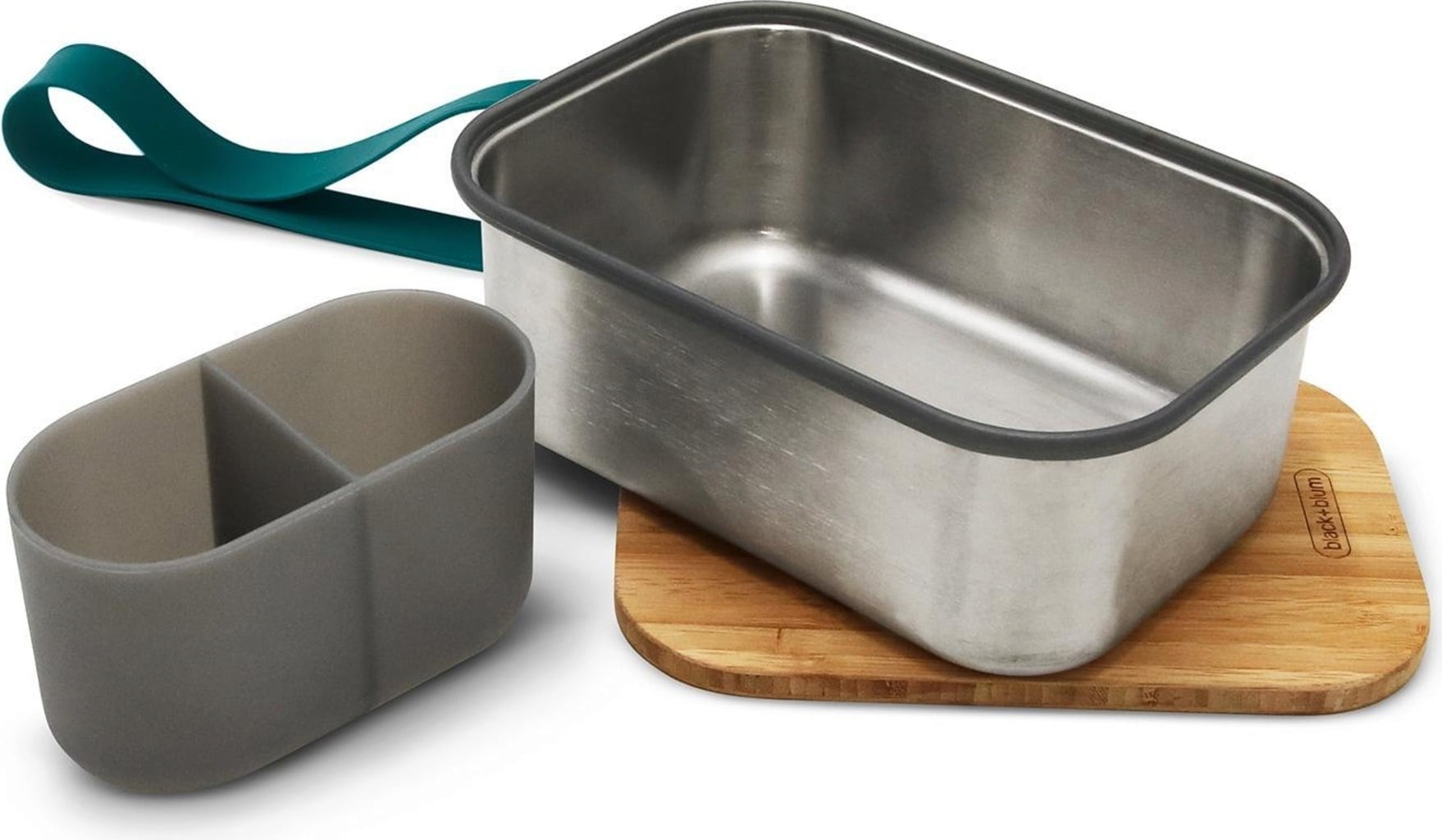 Nerezový obedár bez plastu, do ktorého možno uložiť aj väčšie občerstvenie. S praktickou silikónovou vnútornou priehradkou na dipy alebo šaláty a s vrchnákom z prírodného a antibakteriálneho bambusu, ktorý slúži aj ako doska na krájanie.