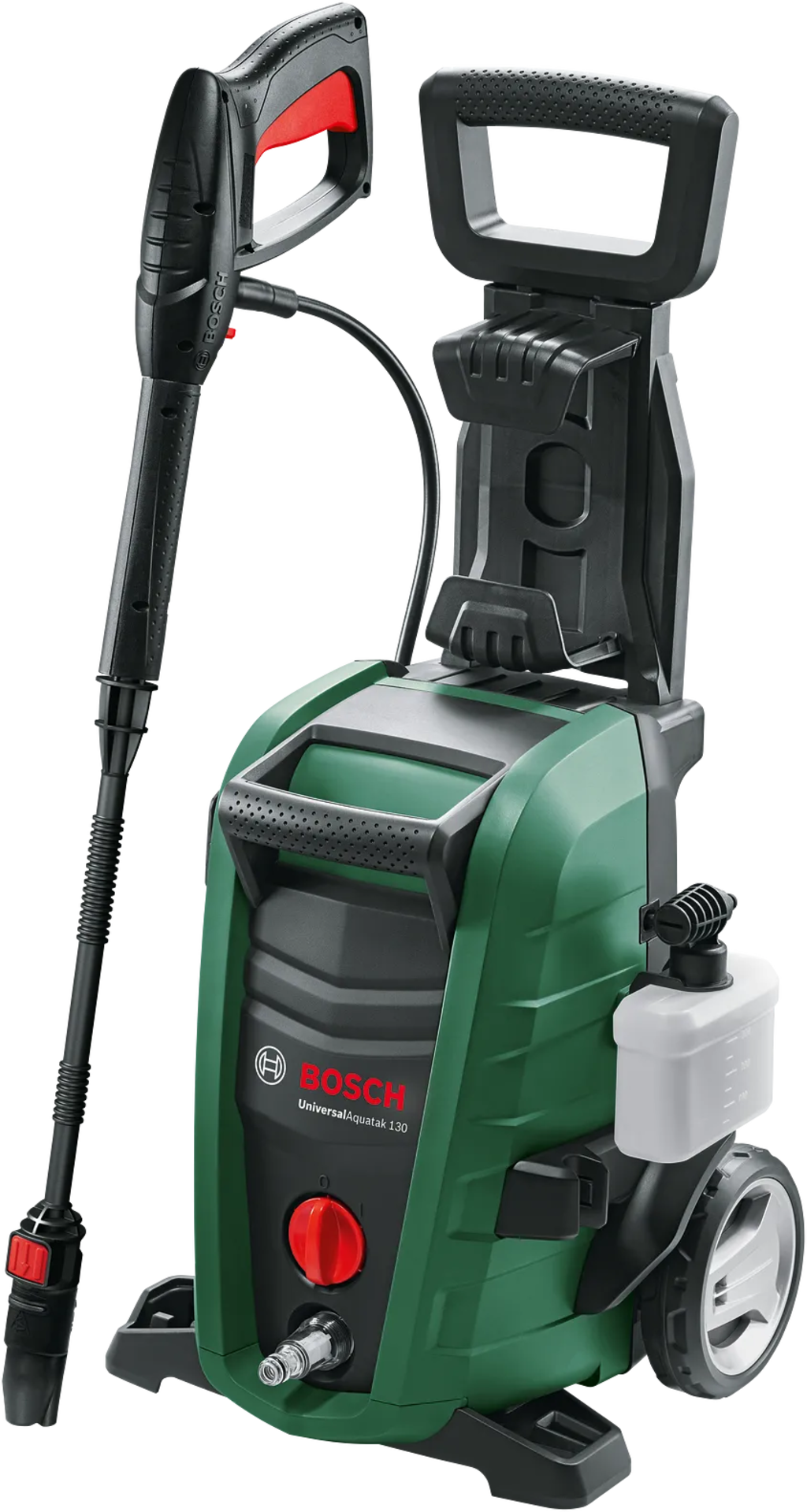 - Maximálny komfort používania: výsuvná rukoväť, väčšie kolesá, rýchlospojky a držiak na pištoľ
