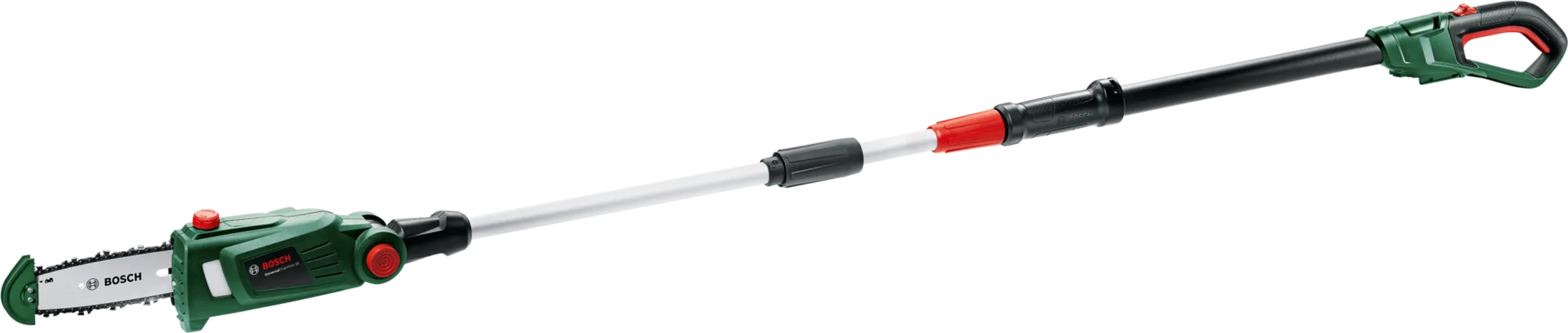 S UniversalChainPole 18 od spoločnosti BOSCH môžete bez námahy orezávať stromy v ťažko prístupných oblastiach stromov bez ich poškodenia. Teleskopickú tyč možno predĺžiť z 210 na 260 cm, čo uľahčuje jej použitie na vyššie konáre.