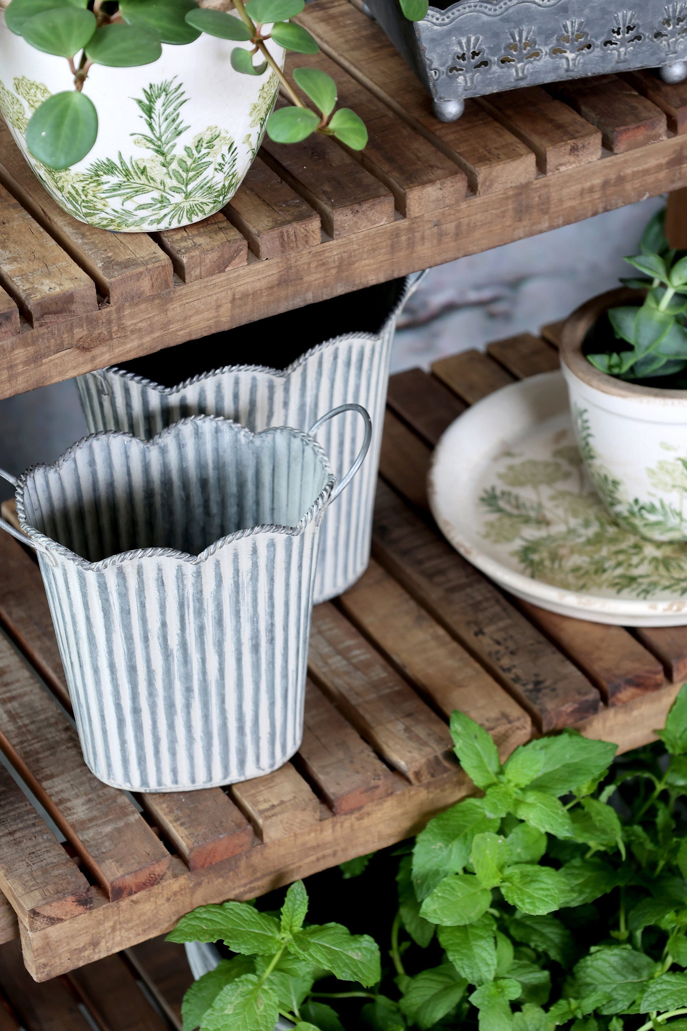 Chic Antique Kvetináč s drážkami a úchytkami (sada 3 ks, antique zink)