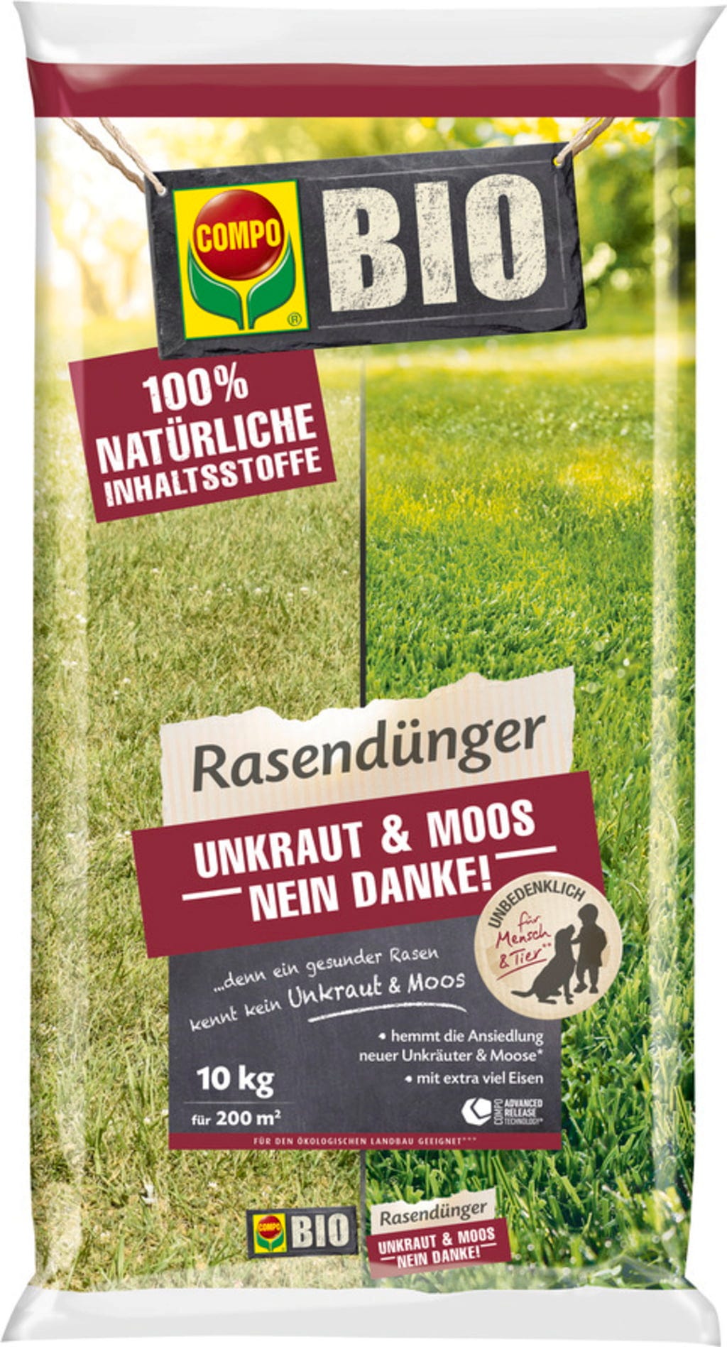 COMPO Bio hnojivo na trávnik - stop burine a machu, 10 kg