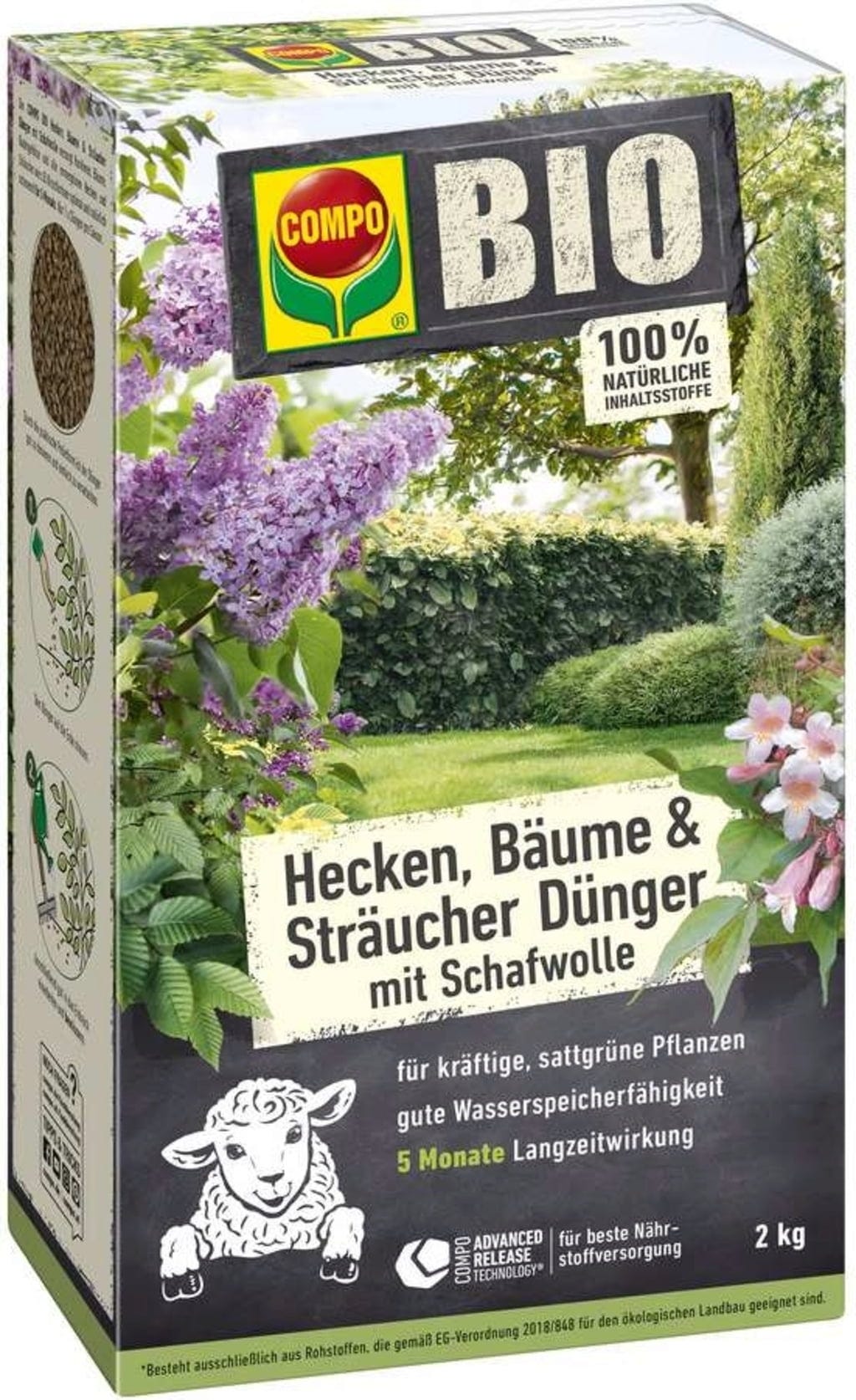 COMPO Bio hnojivo pre živé ploty, stromy a kríky s ovčou vlnou, 2 kg