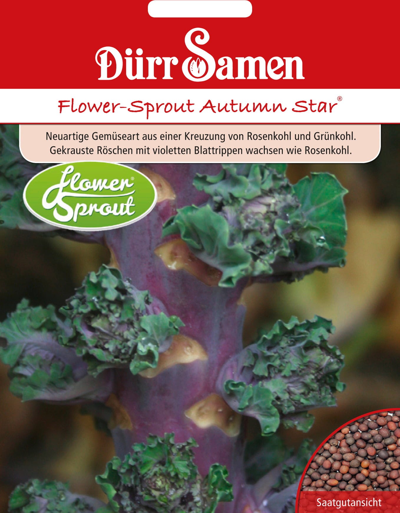 Nová odroda Flower-Sprout Autumn Star® je krížencom ružičkového a kučeravého kelu. Ružičky sú kučeravé a majú fialové listové žilnatiny. Rast je podobný ružičkovému kelu. Zaujímavá zelenina s orieškovou chuťou a nádherným sfarbením.