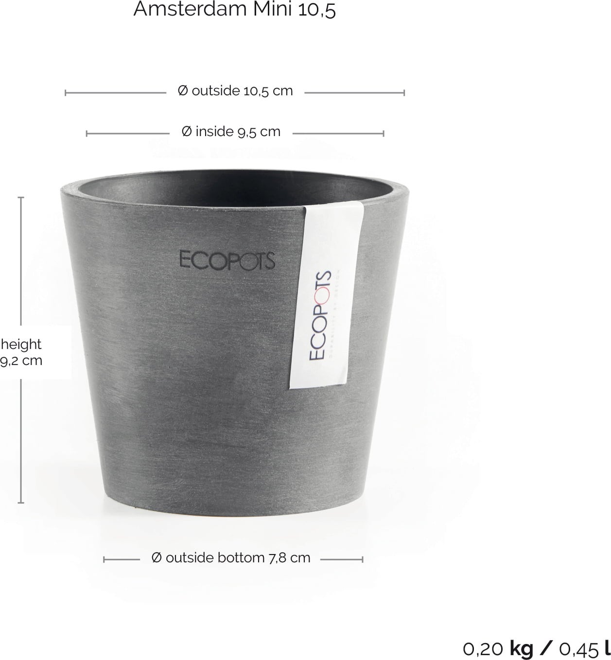 Ecopots Kvetináč Amsterdam (sivý), Ø 10,5 cm, výška 9,2 cm