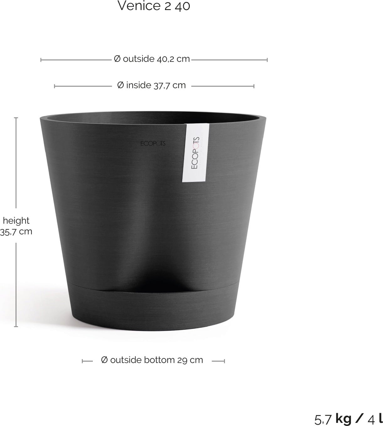 Ecopots Kvetináč Venice 2 (tmavosivý), Ø 40 cm, výška 35 cm