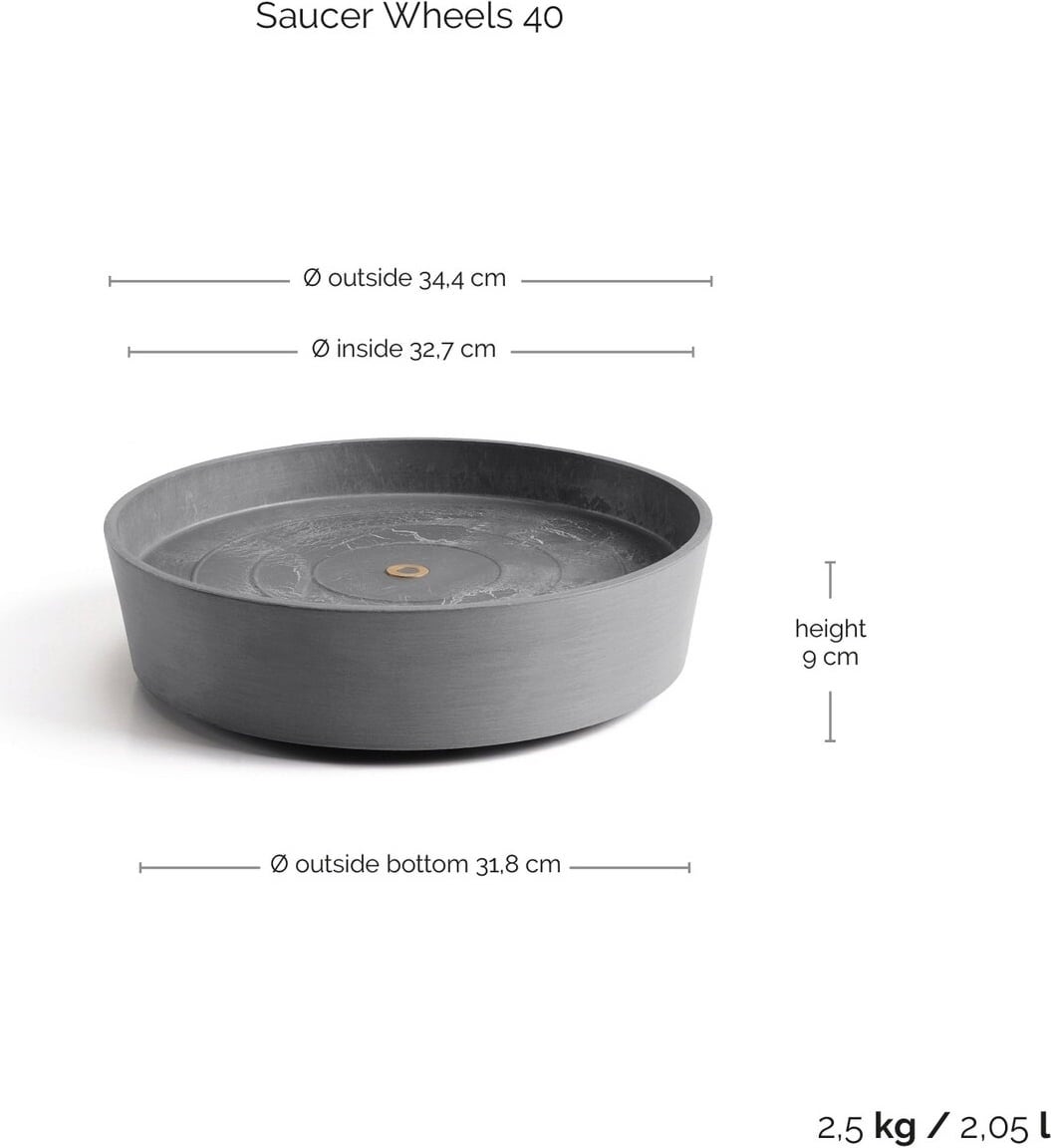 Ecopots Podmiska s kolieskami (sivá), ∅ 34,10, výška 9 cm