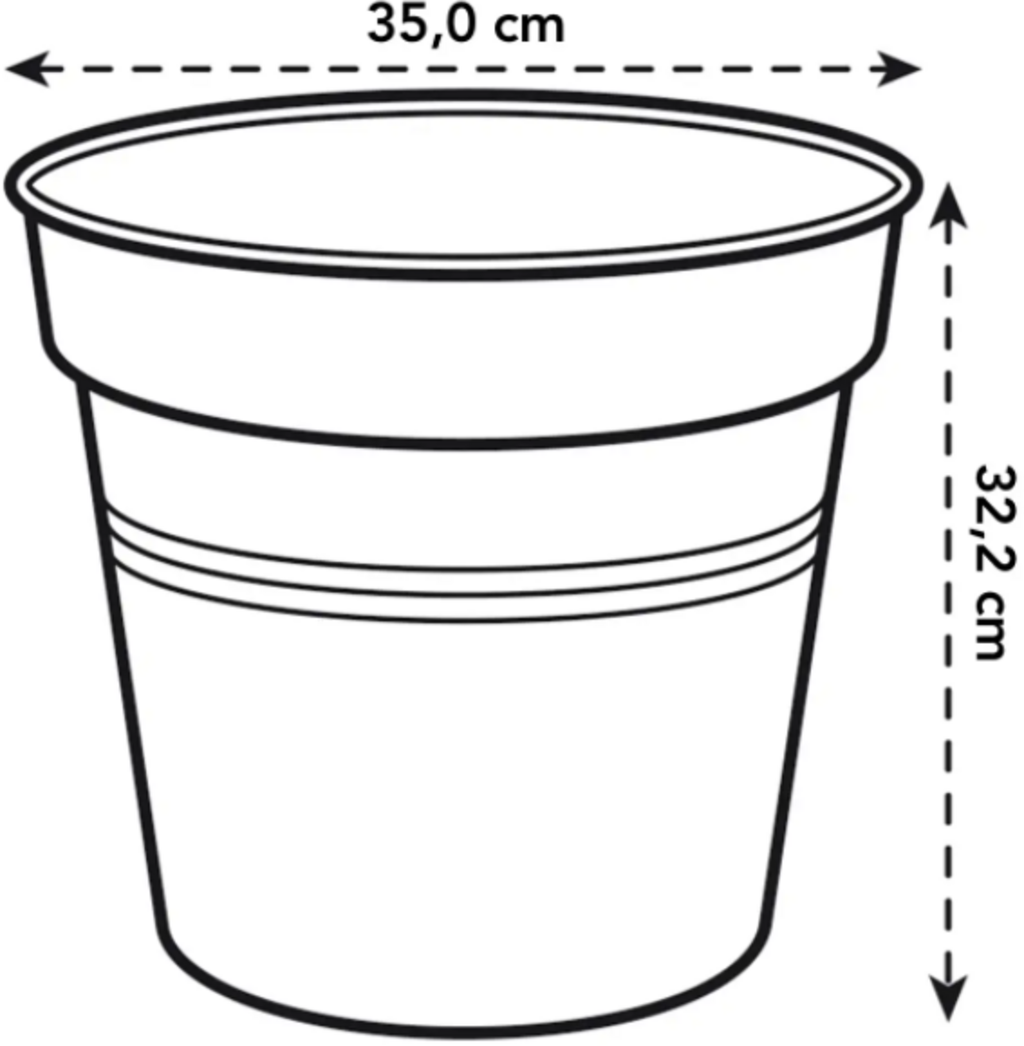 | Priemer (cm) | Výška (cm) | Objem (l) | Vhodná miska pod kvetináč |