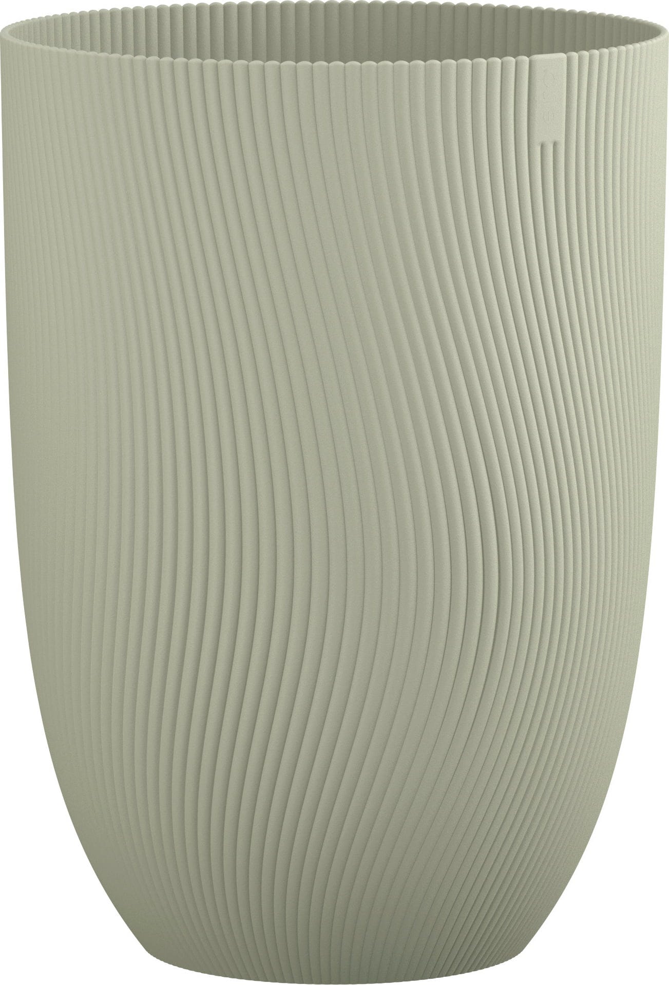 Organický povrch vytvára pokojnú, prirodzenú atmosféru. Kvetináč je odolný voči poveternostným vplyvom, farebne stály a vyrobený zo 100 % recyklovaného plastu - udržateľne vyrábaného pomocou veternej energie.