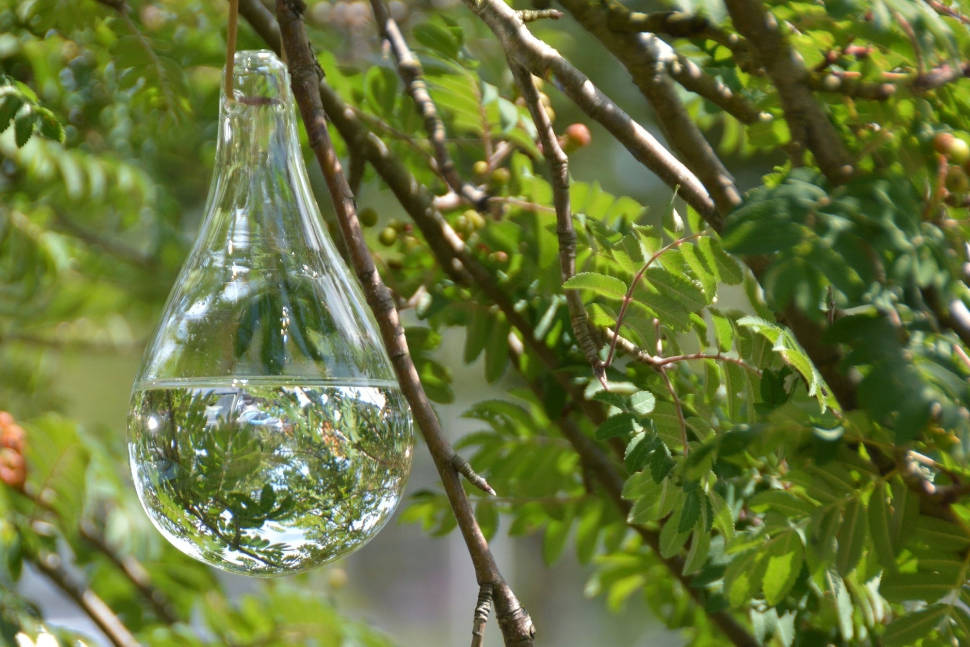 Guľa naplnená vodou má na muchy odstrašujúci účinok vďaka zväčšujúcemu účinku vody a skla v kombinácii s farbou a pohybom.
