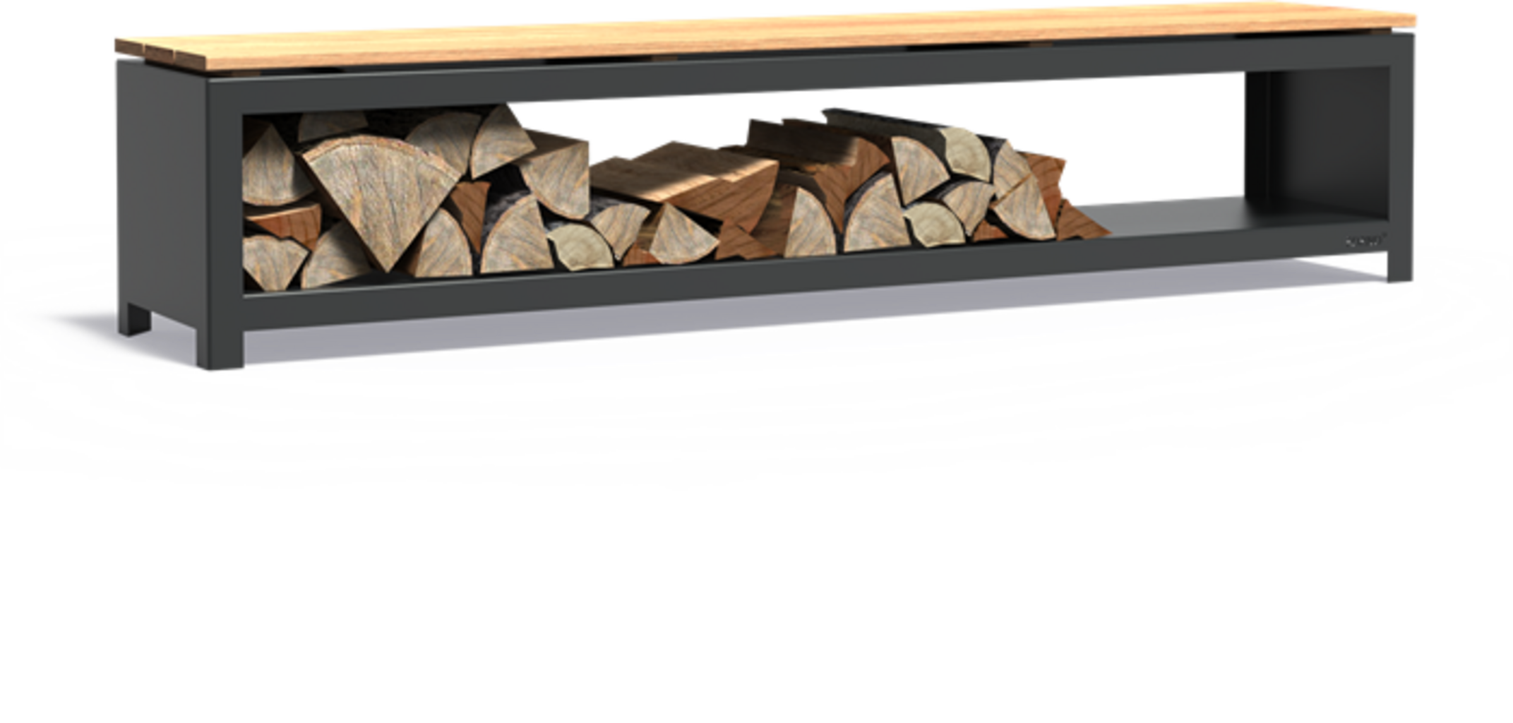 FORNO Úložný box na drevo so sedadlom - s povrchovou úpravou, 200 x 40 x 43 cm