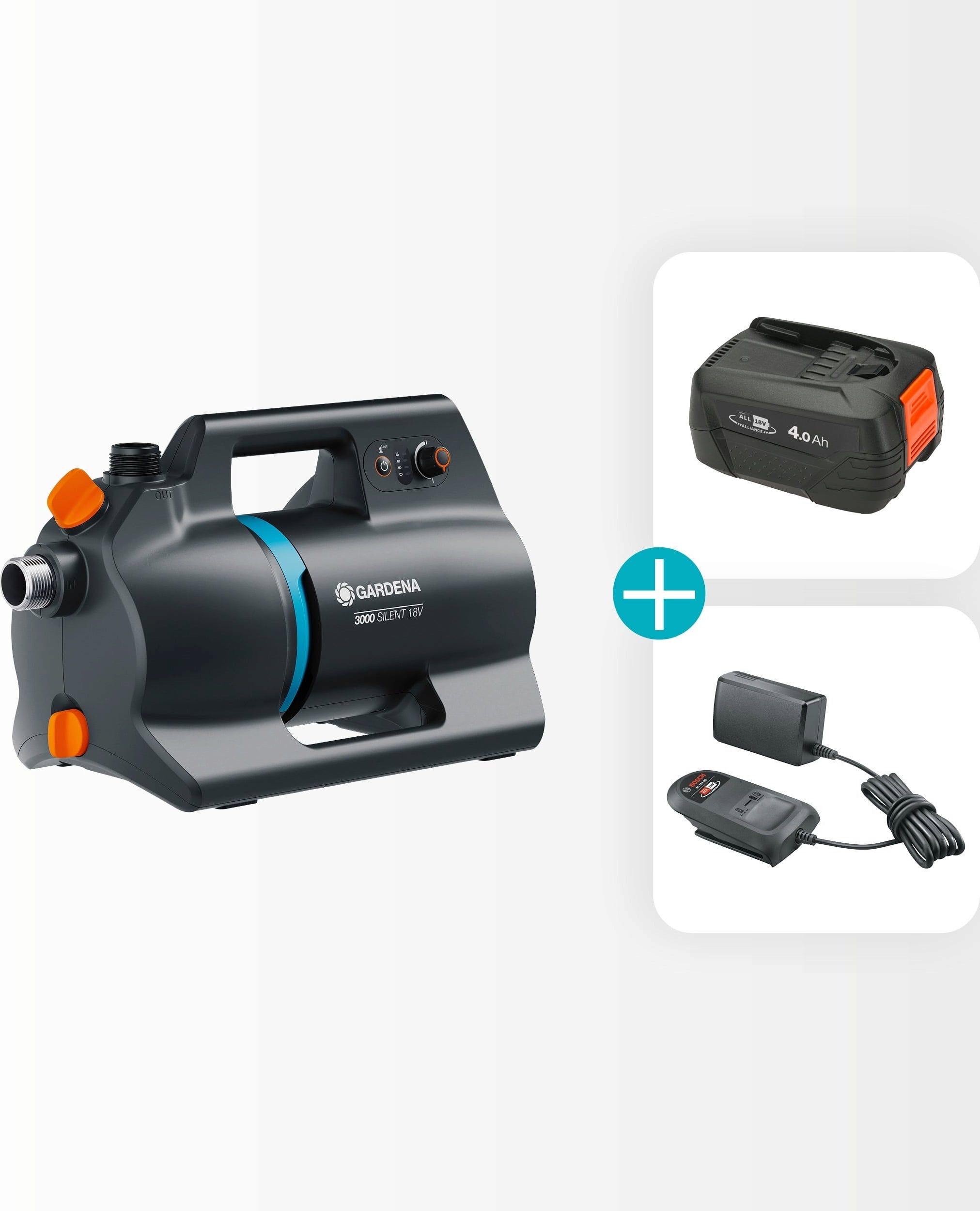 GARDENA Akumulátorové záhradné čerpadlo 3000 Silent 18V P4A Ready-To-Use Set