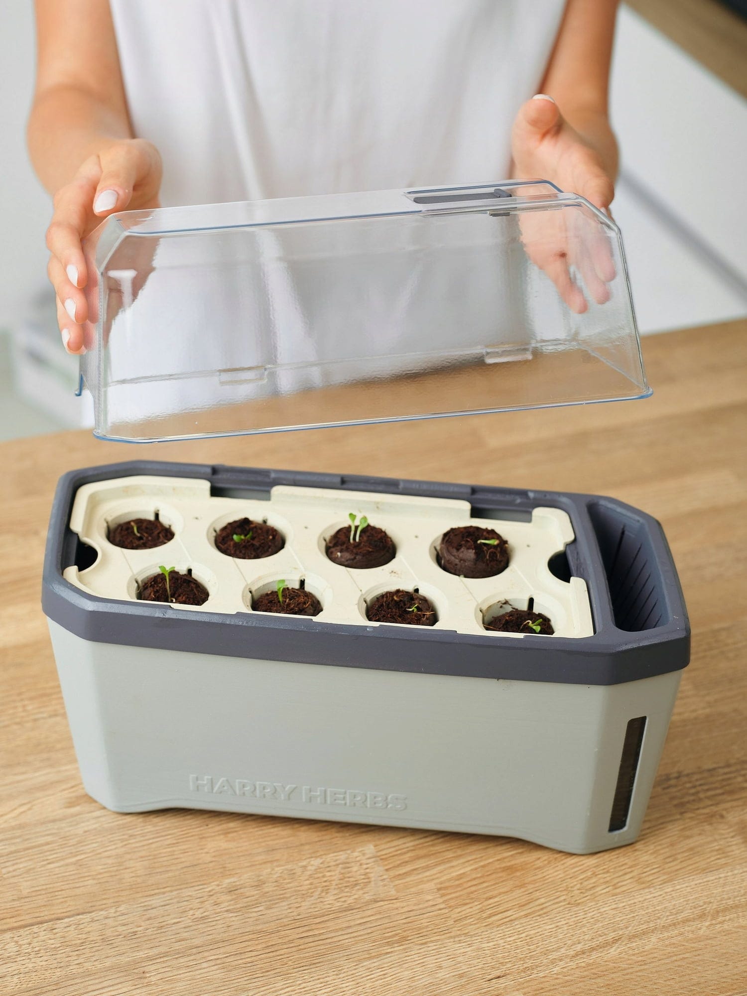 Kvetináč Harry Herbs môžete ľahko vyčistiť špongiou alebo v umývačke riadu pri maximálnej teplote 45°, aby bol pripravený na ďalšie kolo pestovania.