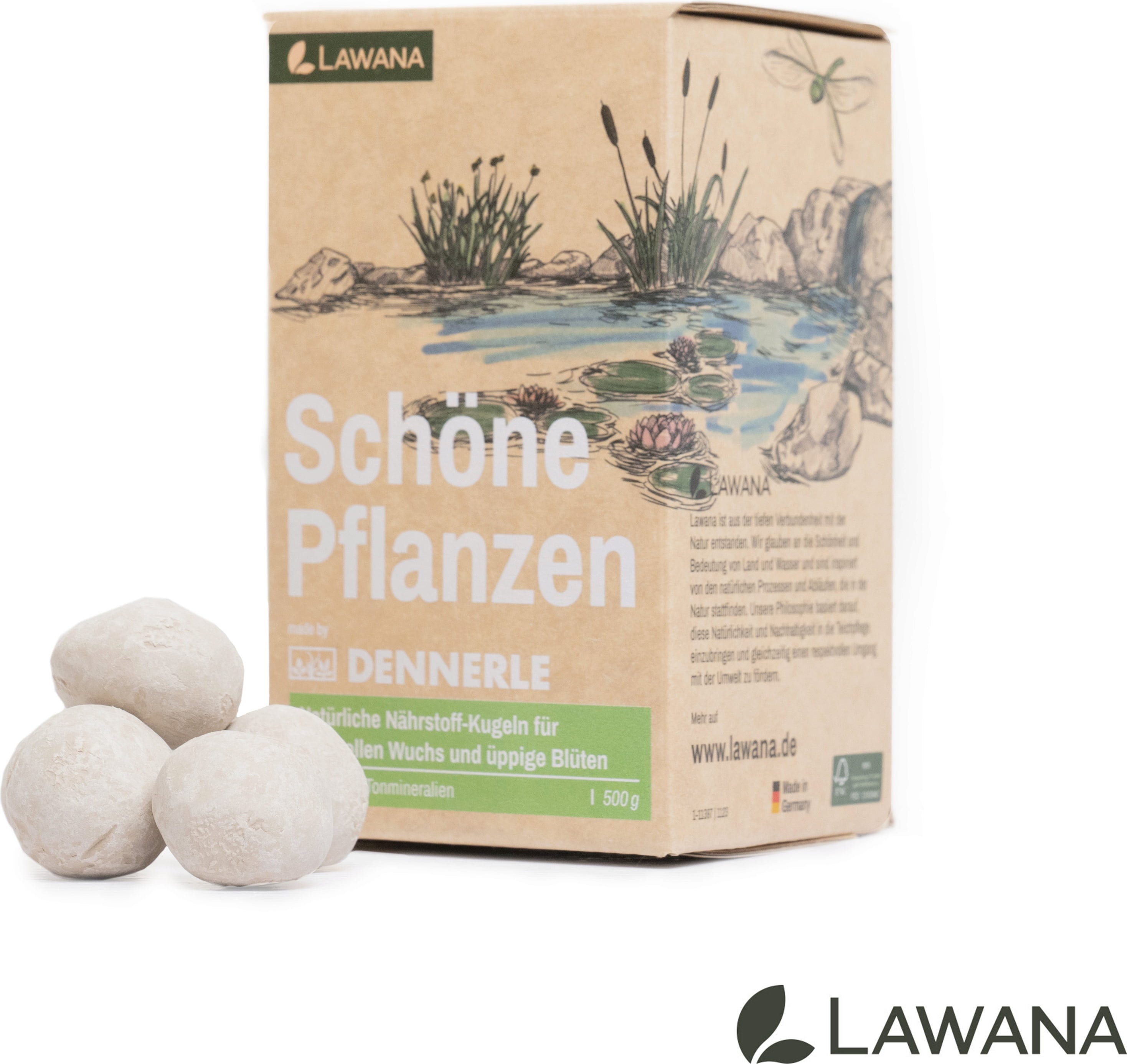 S guličkami LAWANA môžete svojim leknám a vodným rastlinám dodať nádherný vzhľad! Čisto prírodné ílové minerály slúžia ako ideálny zásobník cenných stopových prvkov a minerálov, ktoré vaša jazierková flóra potrebuje pre svieže zelené listy a dlhé obdobie kvitnutia. Keďže guličky zatlačíte špeciálne do oblasti koreňov, živiny sa dostanú presne tam, kde sú potrebné, bez toho, aby ovplyvnili voľnú vodu v jazierku.