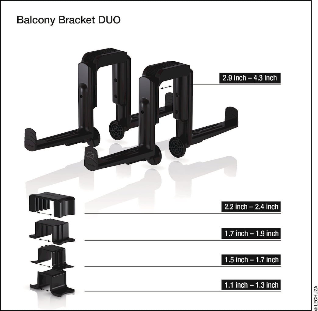Balkonový držiak DUO zdvojnásobuje možnosti štýlového vystavenia rastlín. Vďaka dômyselnej konštrukcii je možné pripevniť dva balkónové truhlíky.