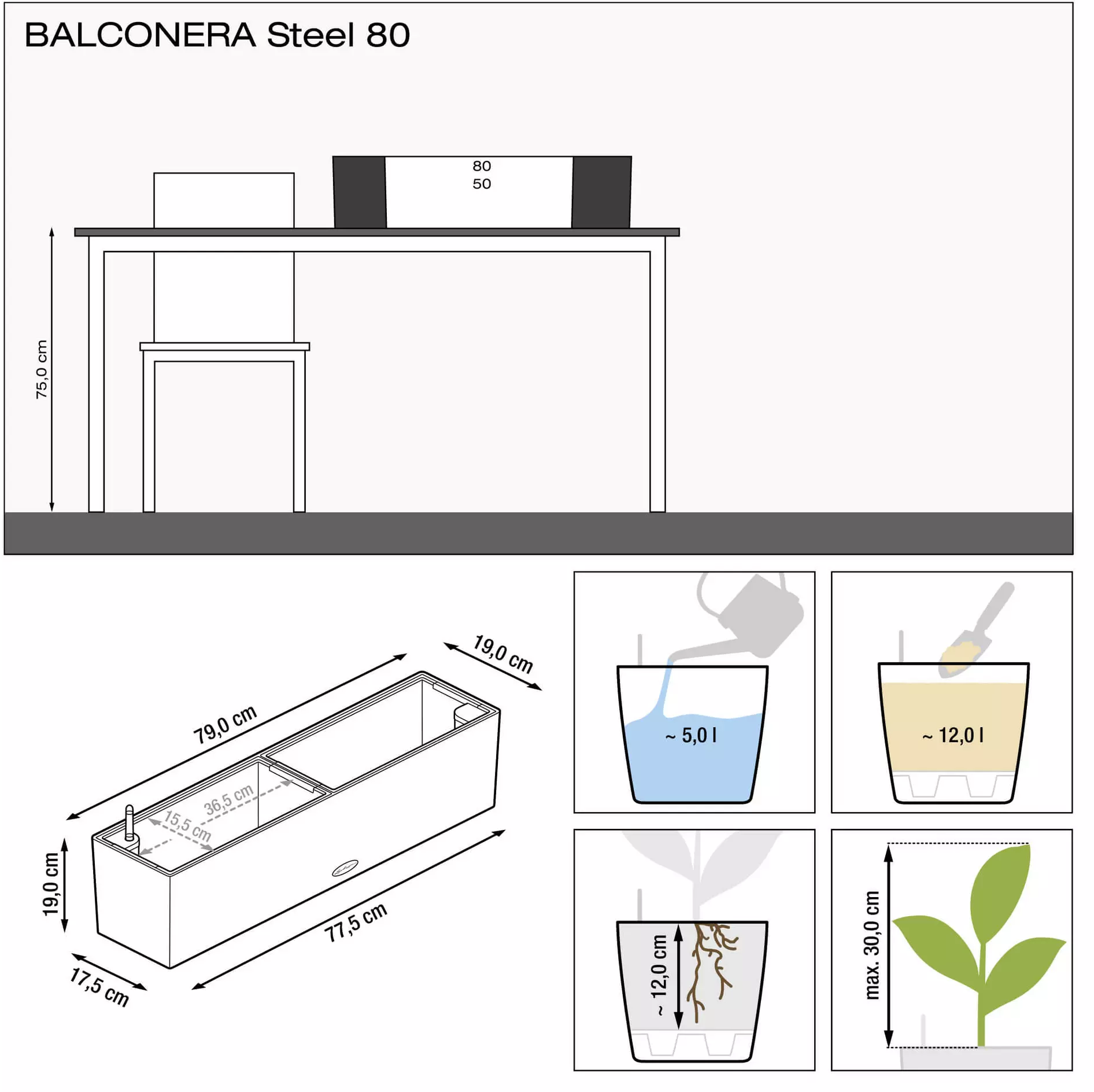 | Veľkosť nádoby na rastliny: | 15,5 x 46,5 cm | 2 x 15,5 x 36,5 cm |