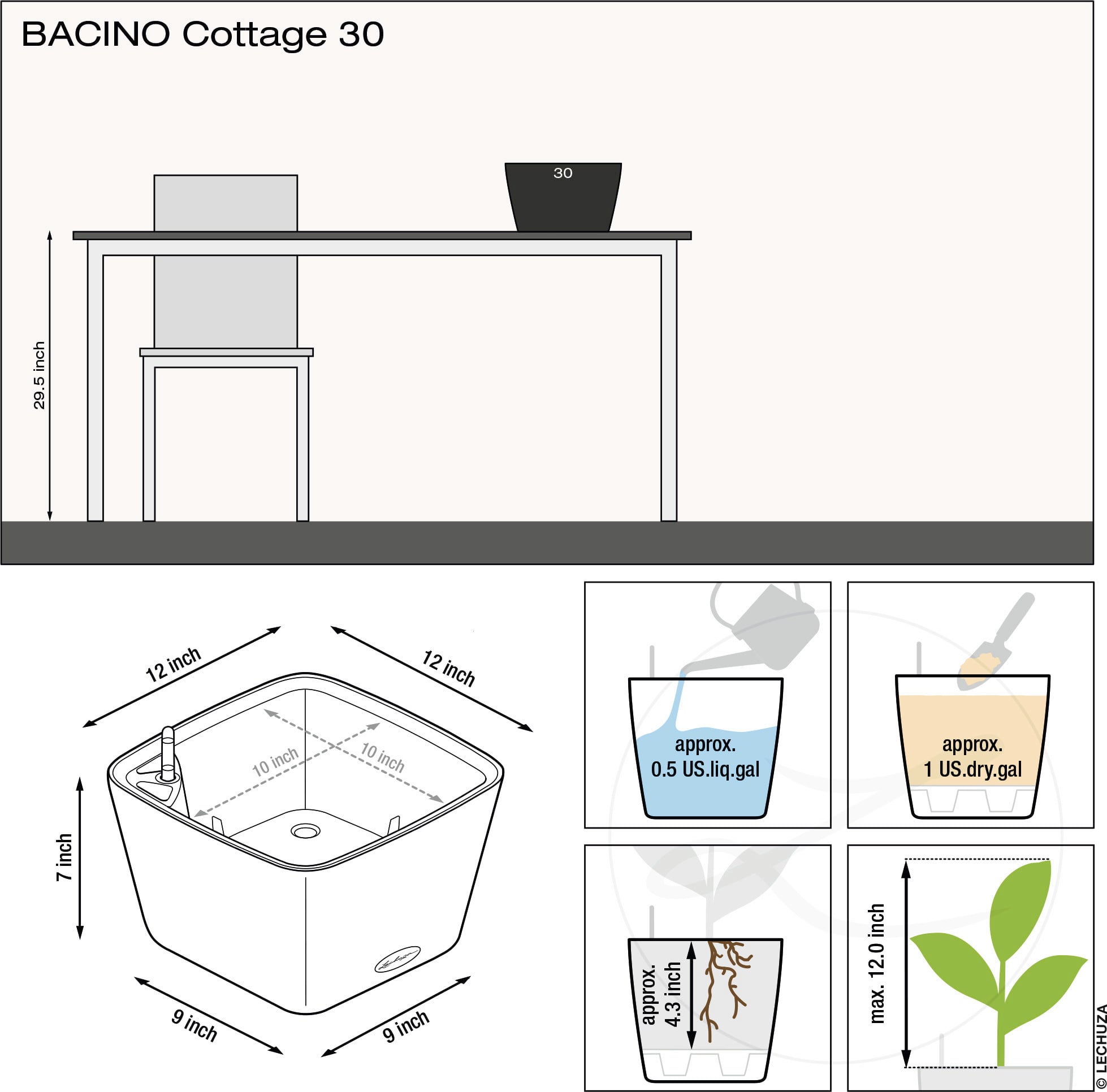 Obsah: kvetináč + vložka na rastliny + zavlažovacia sada Lechuza