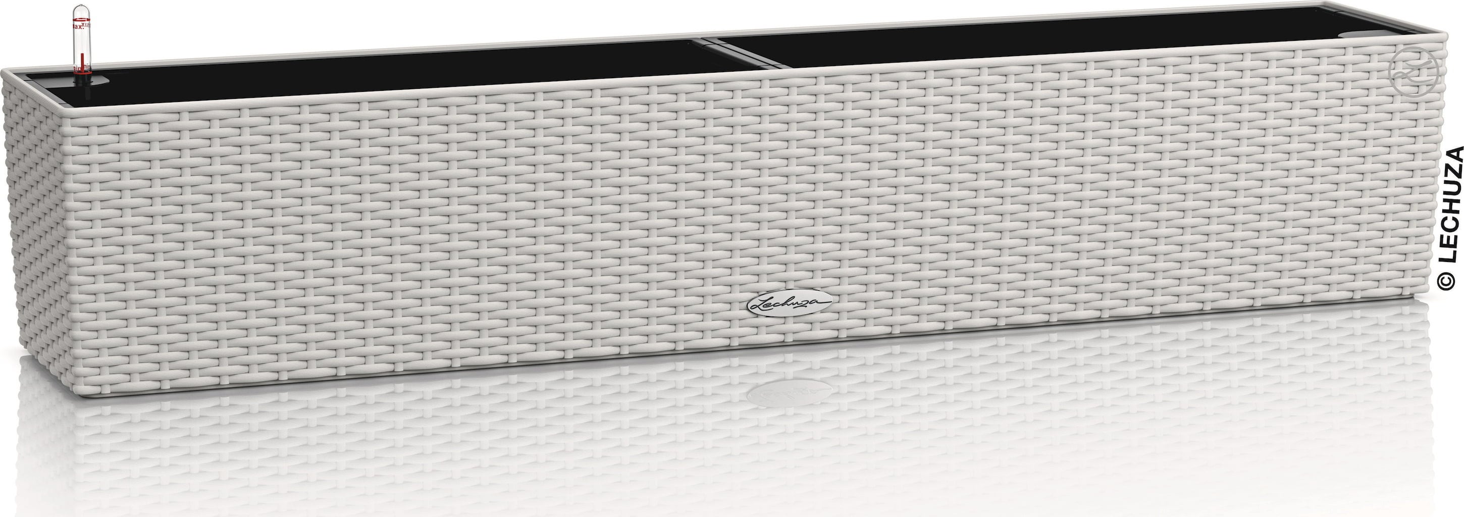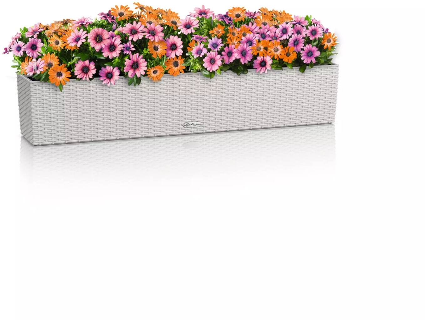 Elegantný kvetináč "Balconera Cottage" od spoločnosti Lechuza šikovne prezentuje kvety vďaka atraktívnej štruktúre povrchu. Môže byť umiestnený voľne alebo pripevnený k balkónovému zábradliu pomocou samostatne dostupného držiaka.