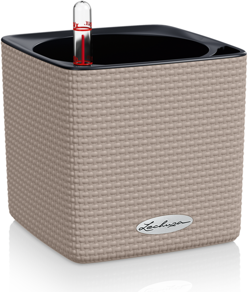 Pekný malý kvetináč Cube Color 14 od Lechuza má knôtový zavlažovací systém. Bazalka, pažítka alebo rozmarín sa vkladajú spolu s kultivačným kvetináčom, presádzanie už nie je potrebné. Jednoducho vložte dodaný knôt na dno bylinkového kvetináča a zalievajte ako zvyčajne. Rastlina si sama dodá potrebné množstvo vody.