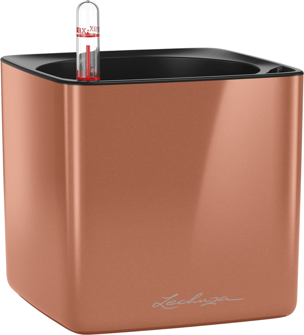 Lechuza Stolový kvetináč CUBE Glossy 14, spicy copper high gloss