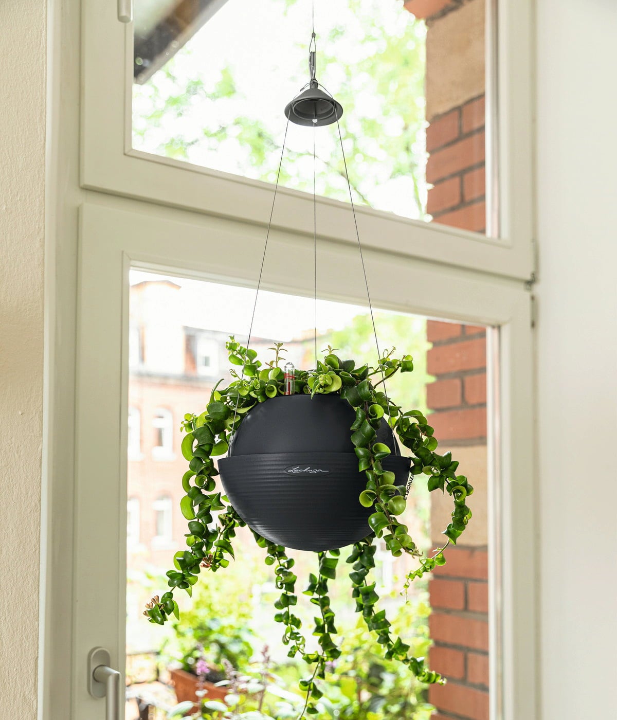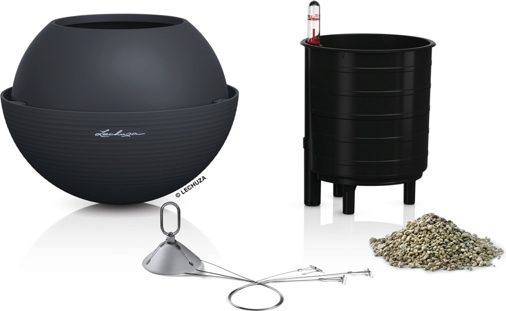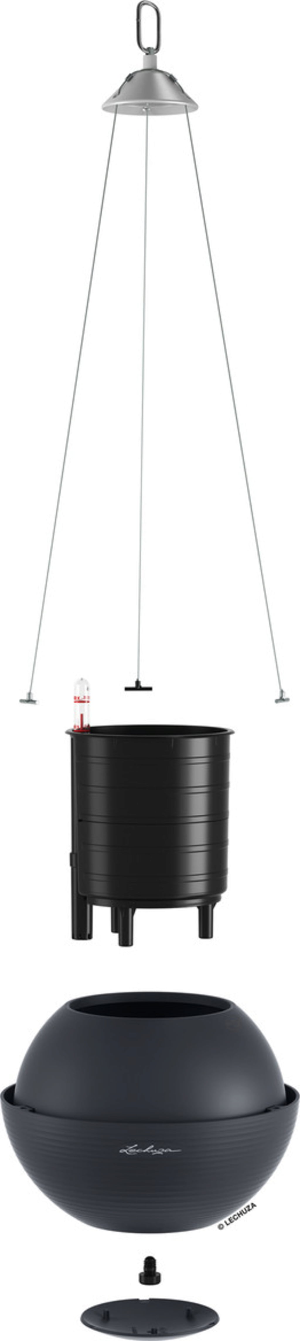 Rozsah doručenia: sada "všetko v jednom", ktorá sa skladá z kvetináča, vyberateľnej nádoby na rastliny, sady na zavlažovanie Lechuza a príslušenstva na zavesenie z nehrdzavejúcej ocele.