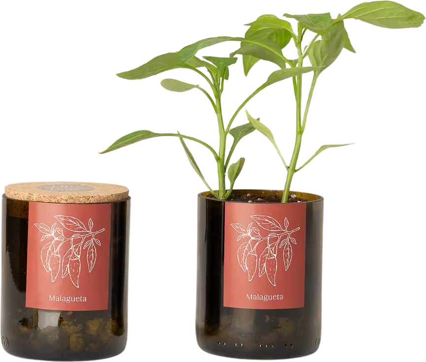 Chilli Bottle Garden premení recyklovanú fľašu od vína na štýlovú minizáhradku. Stačí zasiať, zaliať a sledovať, ako chilli rastie - ideálne pre malé priestory, začiatočníkov alebo ako udržateľný darček. Ručne vyrobený a ekologický produkt prináša prírodu, dizajn a radosť priamo k vám domov.