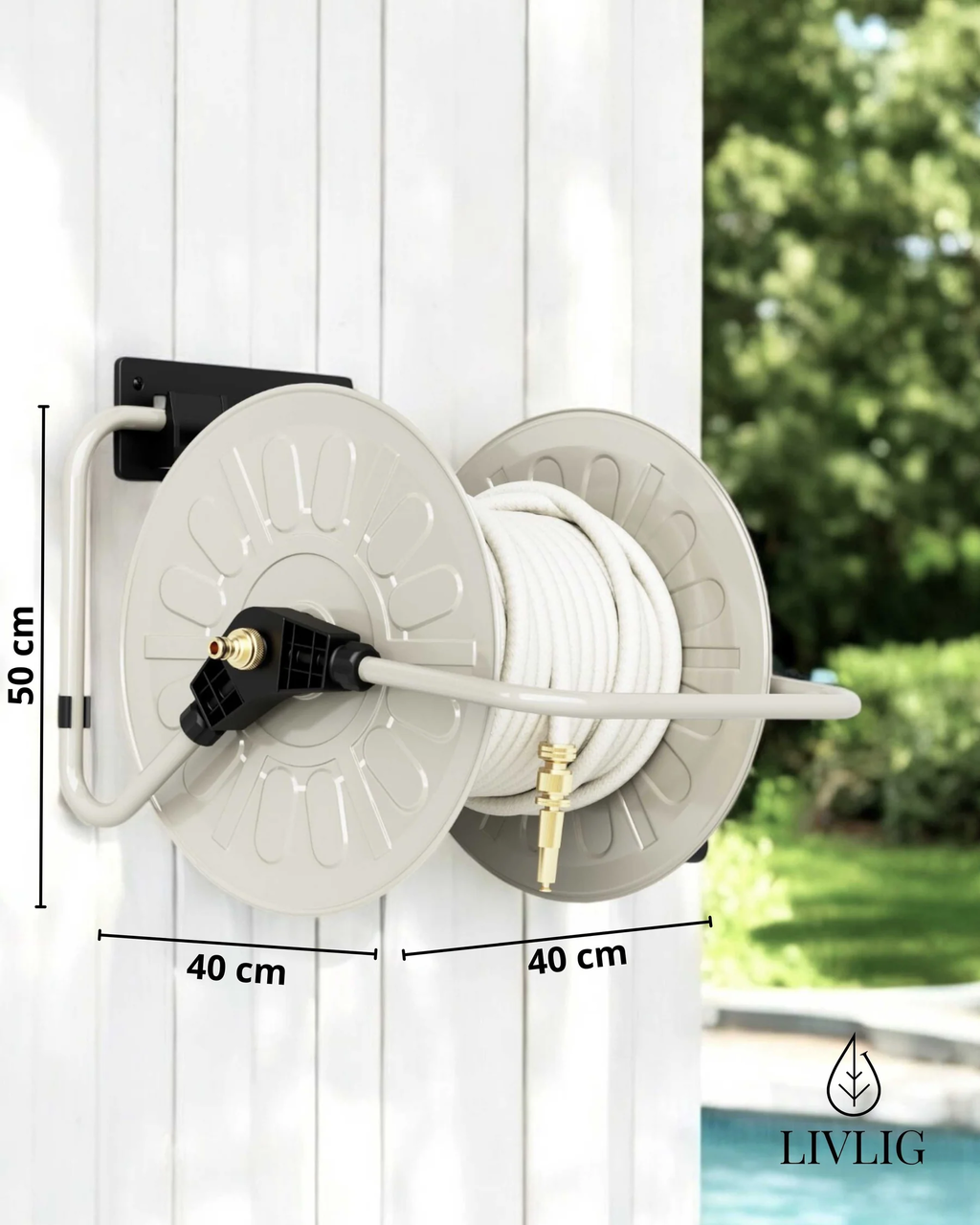 S navijakom na hadicu LIVLIG z robustného kovu môžete do svojho záhradkárčenia vniesť systém a štýl. Toto vysokokvalitné úložné riešenie zaujme nielen svojou funkčnosťou, ale aj odolným dizajnom. Či už je tento bubon na hadicu namontovaný na stene alebo sa používa na podlahe, prispôsobí sa vašim potrebám a zabezpečí bezproblémové navíjanie pri každom použití.