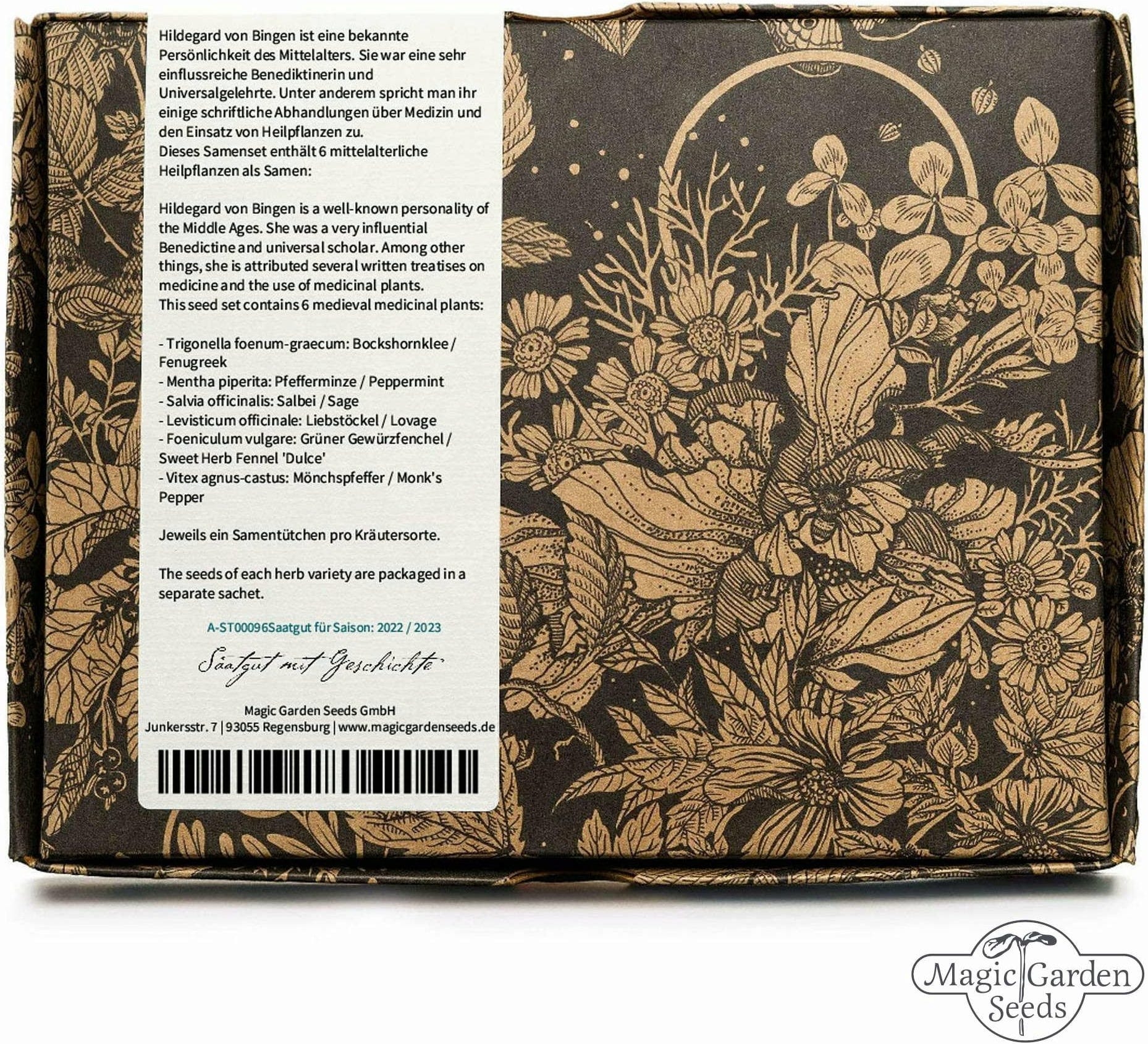 V stredoveku nebolo veľa žien, ktoré by sa dokázali presláviť - Hildegarda z Bingenu bola jednou z týchto výnimiek. Táto vplyvná benediktínka sa podrobne zaoberala bylinkárstvom, takže jej práca žije dodnes. S touto sadou môžete zasiať šesť rôznych liečivých rastlín, ktoré sa používali už v stredoveku. Všetky odrody sú navyše prínosom pre hmyz hľadajúci nektár, ako sú včely, čmeliaky, motýle a pod.