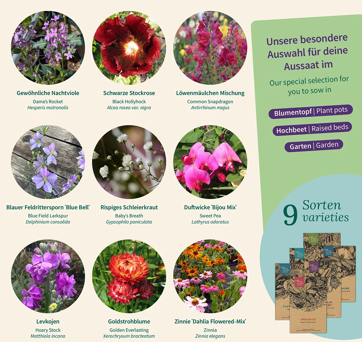 - sada s 9 tradičnými rastlinami do vidieckej záhrady