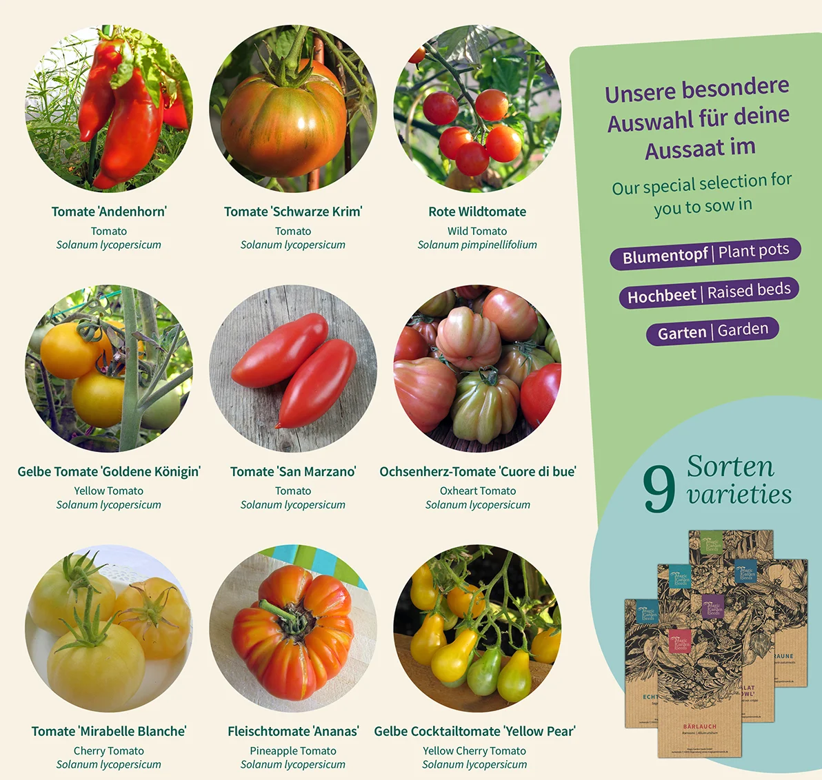 Táto pestro zostavená sada semien je nevyhnutnosťou pre všetkých milovníkov rajčiakov, pretože obsahuje 9 tradičných odrôd tejto obľúbenej rastliny, z ktorých každá nadchne svojím nezameniteľným charakterom a chuťou.