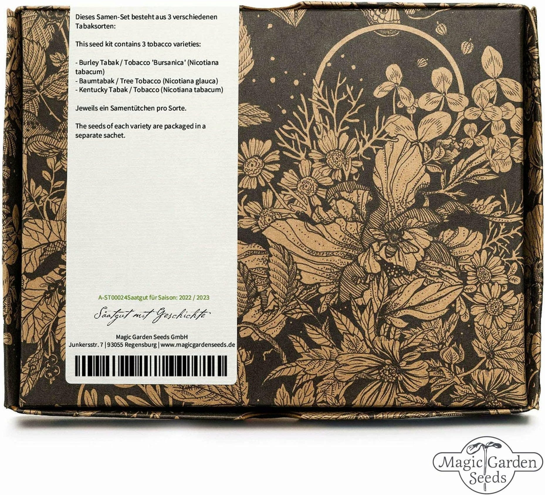 V tomto krásnom balení sa nachádzajú rôzne druhy rastlín tabaku, s ktorými si môžete vypestovať a zozbierať svoj vlastný tabak. Vzhľadom na našu klímu rastú rastliny tabaku zväčša len ako jednoročné, ale každý rok sa dajú bez problémov znova pestovať. Vďaka svojim veľkým listom a nápadným kvetom majú rastliny tabaku navyše vysokú okrasnú hodnotu.