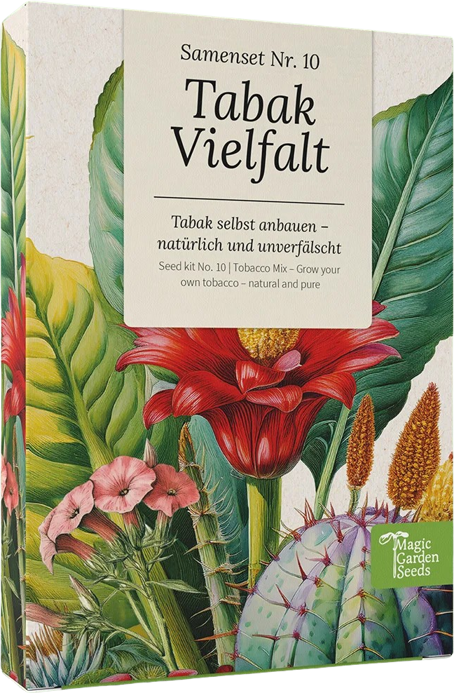 Týchto 6 vybraných odrôd tabaku obsiahnutých v tomto boxe je vhodných na pestovanie v záhrade aj na balkóne a po zbere sa môžu sušiť a ďalej spracovávať na individuálne tabakové zmesi.