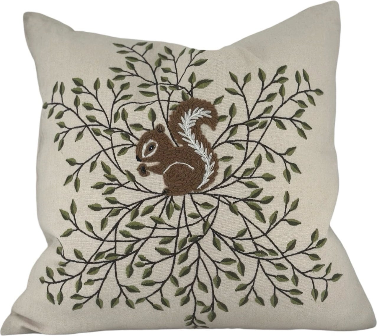 Obliečka na vankúš "Sciurus“ prináša kúzlo lesa priamo na vašu pohovku. Detailne vypracovaný motív veveričky obklopenej zelenými vetvičkami a hnedými listami vytvára útulnú atmosféru. Vyrobené zo 100 % bavlny.