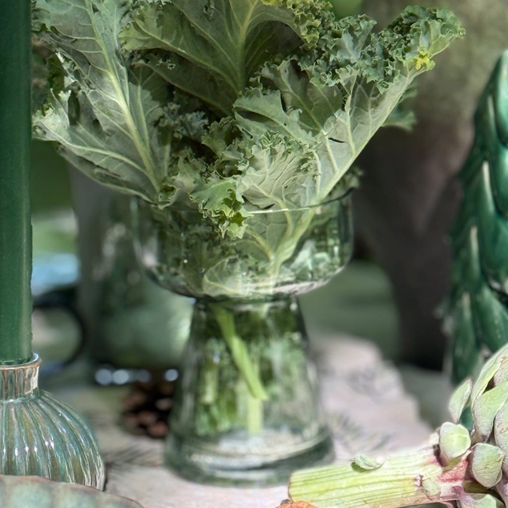 Sklenená váza Ami predstavuje štýlový doplnok pre kvetinovú dekoráciu. Jej kalichovitý dizajn nechá vyniknúť čerstvé aj sušené kytice. Vďaka jemnému zelenému odtieňu sa výborne hodí k prírodným aranžmánom.