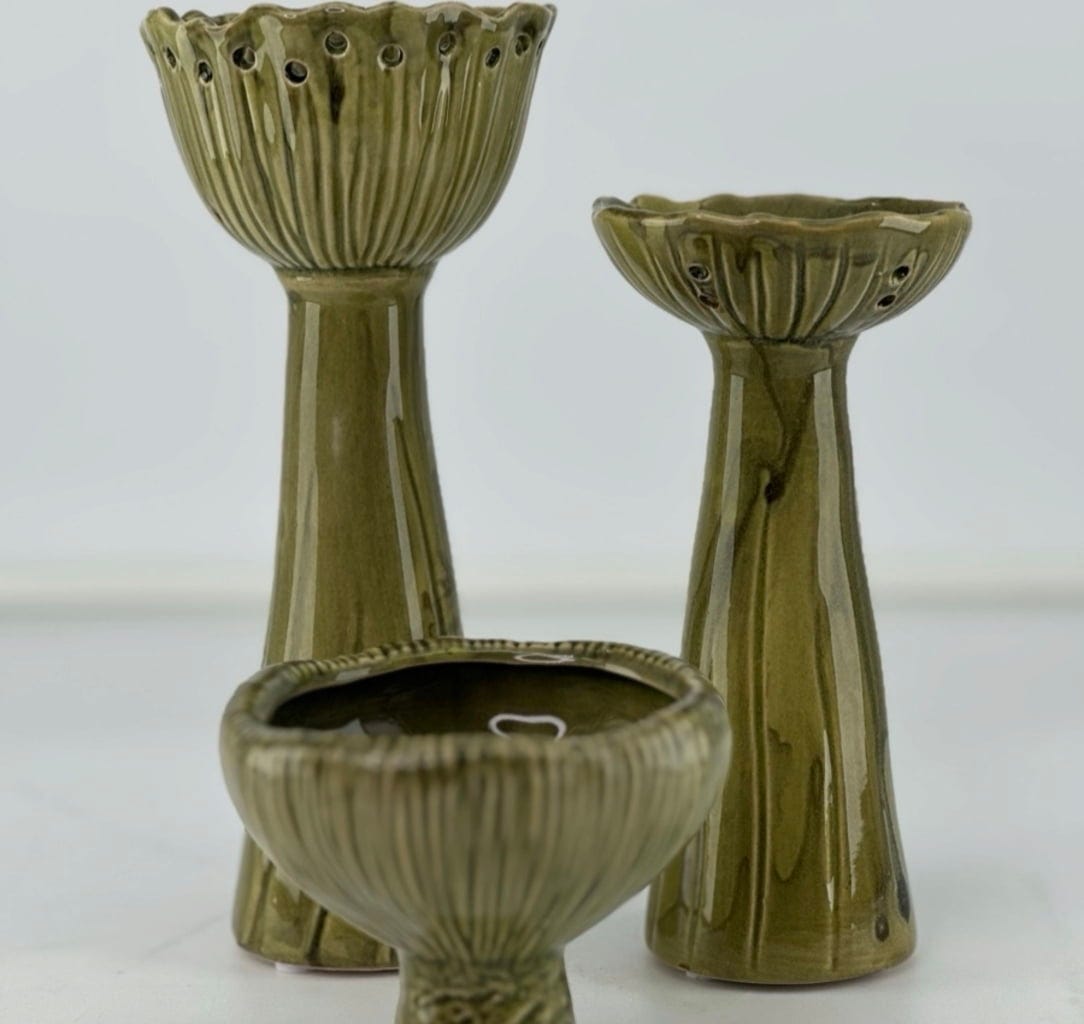 Váza Lotus prináša do vášho domova skulpturálnu eleganciu. Lesklá glazúra a reliéfny vzor pripomínajú štruktúru lotosového koreňa – živú, modernú a zároveň nadčasovú. Každá váza je vďaka výrobnému procesu unikát.