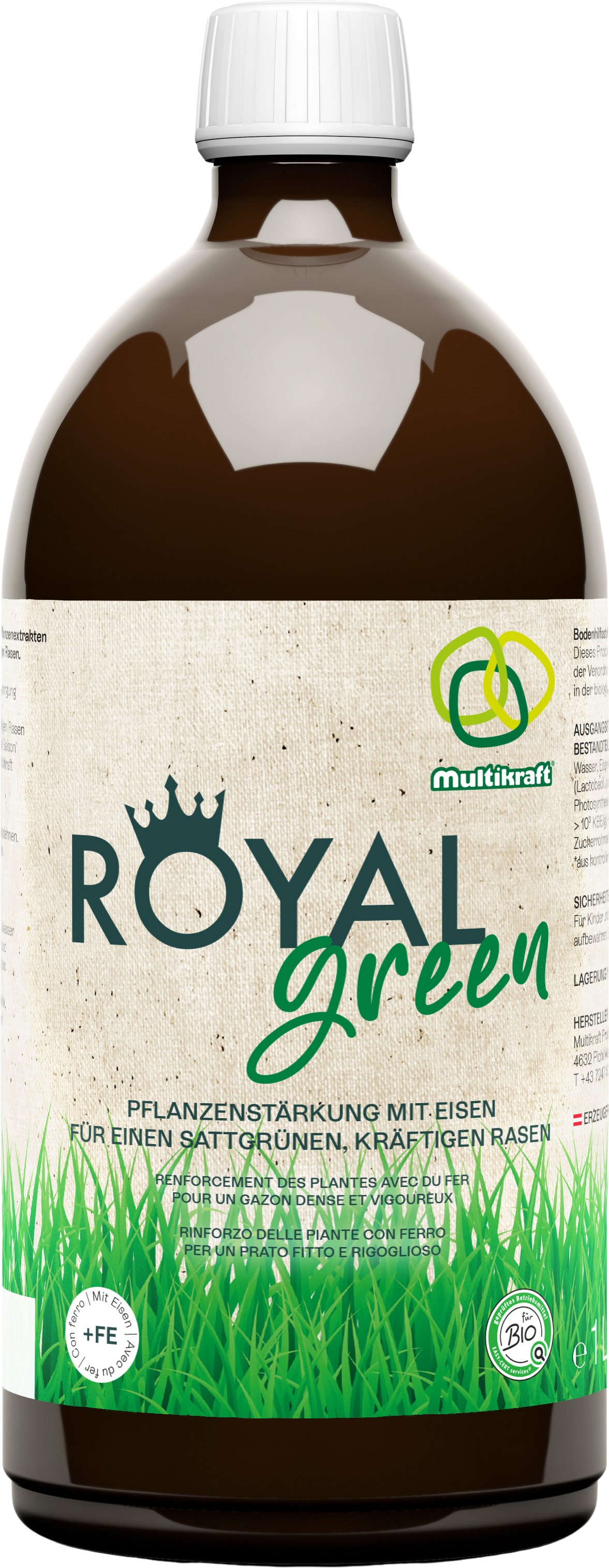 Royal Green kombinuje účinné mikroorganizmy, rastlinné výťažky a železo na podporu prirodzenej aktivity pôdy a viditeľné posilnenie trávnika. Výsledok: svieža zeleň, hustý rast a pevný trávnatý povrch, ktorý je menej náchylný na mach, sucho a environmentálnu záťaž.