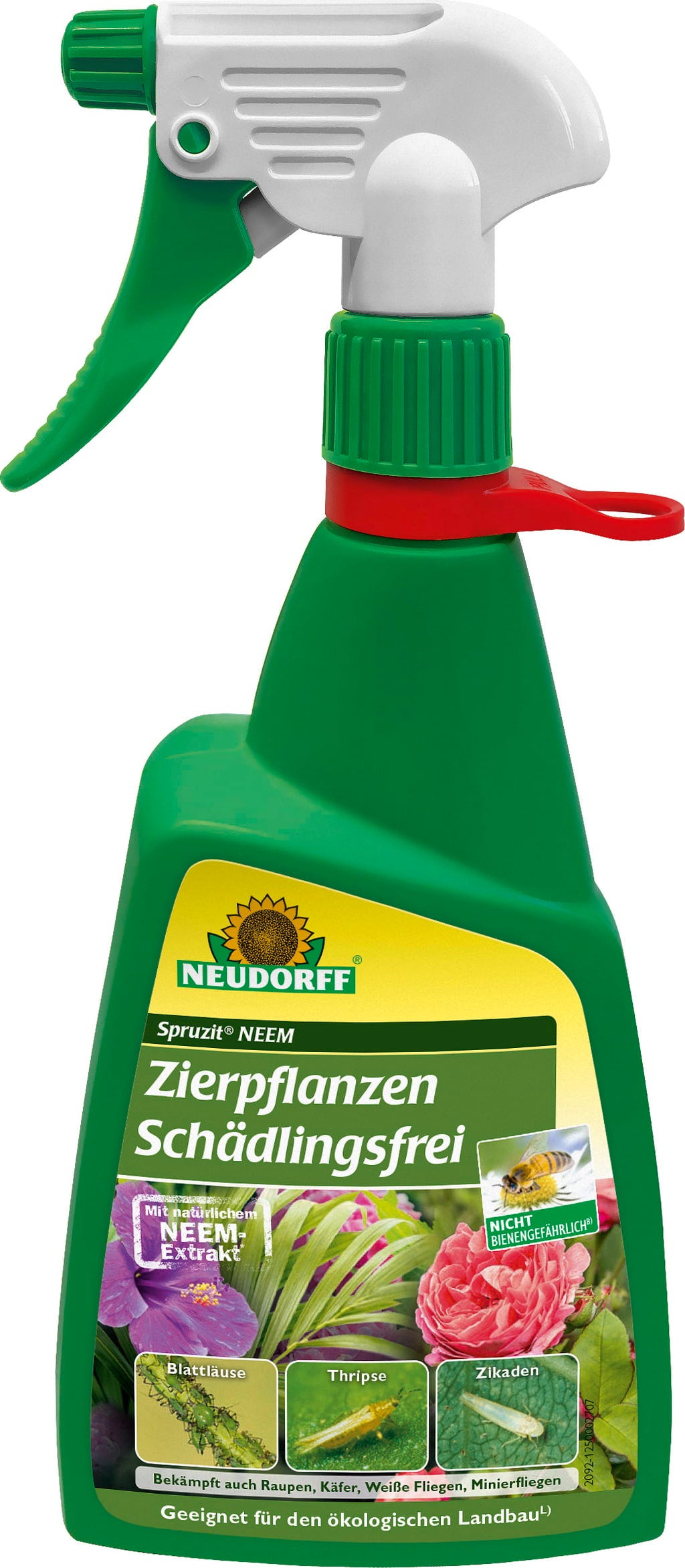 Spruzit Neem proti škodcom okrasných rastlín od spoločnosti Neudorff je účinný prostriedok na boj proti mnohým škodcom na okrasných rastlinách. Roztok pripravený na okamžité použitie obsahuje prírodnú účinnú látku azadirachtín, známu aj pod názvom neem, a strieka sa priamo na rastlinu. Účinná látka narúša vývojový cyklus škodcov, takže nemôžu vznikať životaschopné potomstvá. Roztok spoľahlivo zbavuje okrasné rastliny škodlivého hmyzu a zároveň je neškodný pre včely.