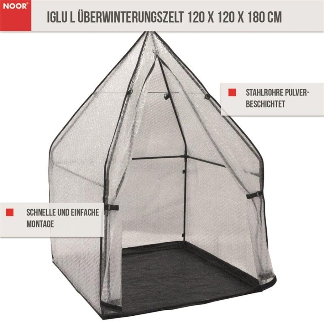 Keď udrie zima, rastliny v kvetináčoch a nádobách citlivé na chlad potrebujú vhodnú ochranu. Stan na prezimovanie vďaka svojim izolačným vlastnostiam odvádza vynikajúcu prácu a možno ho postaviť tam, kde je to potrebné, či už v záhrade, na terase alebo na balkóne. Vďaka prepracovanému zásuvnému systému sa IGLU zostaví rýchlo a jednoducho. Veľmi praktický je kvalitný zips, vďaka ktorému je otváranie a zatváranie maximálne jednoduché. Za zmienku stojí výška stanu, v ktorom nájdu útočisko pred chladom aj väčšie rastliny.