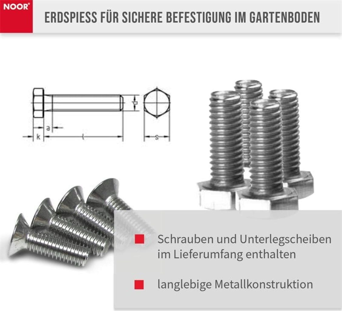 Ak chcete namontovať nosný stĺpik vašej bočnej markízy od značky NOOR na nerovnom povrchu, ideálnym riešením je tento zemný tŕň. Vytvára optimálny základ a pevnú stabilitu pre montáž nosného stĺpika.