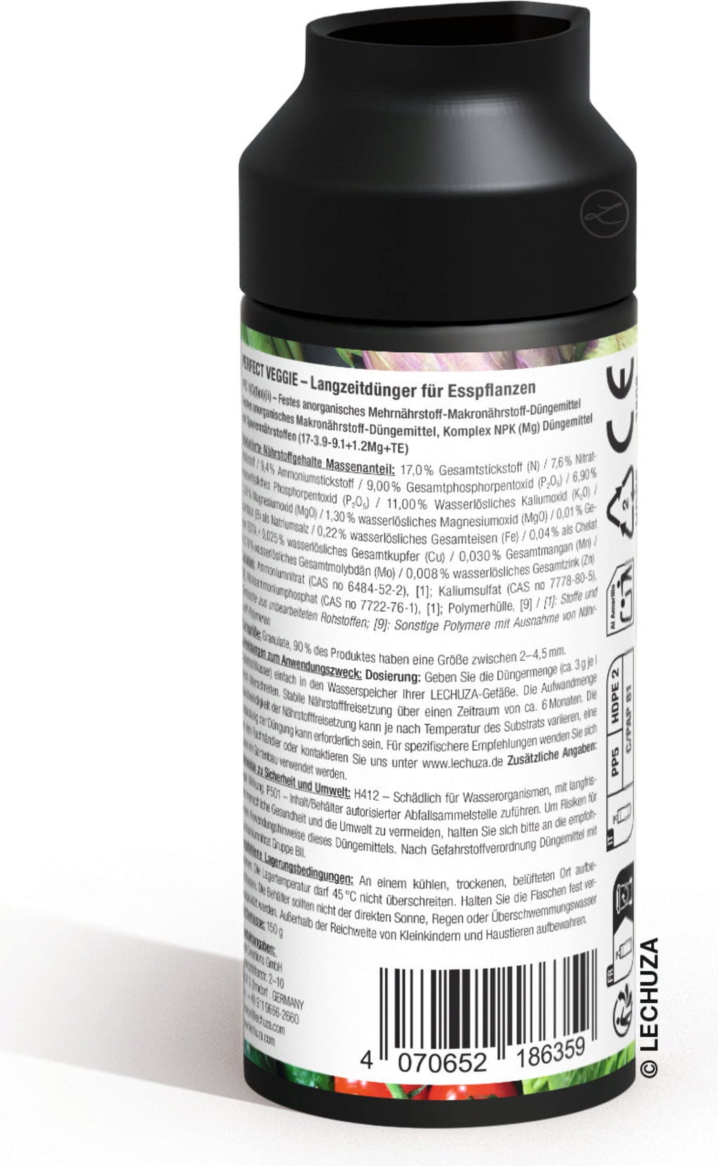 Zdravý vývoj vašich úžitkových rastlín začína pri ich stabilnej výžive. Perfect Veggie bol špeciálne vyvinutý na to, aby dlhodobo a presne vyživoval zeleninové rastliny. Kontrolované uvoľňovanie živín zabezpečuje pevnú štruktúru plodov a vysokú odolnosť voči vonkajším vplyvom.