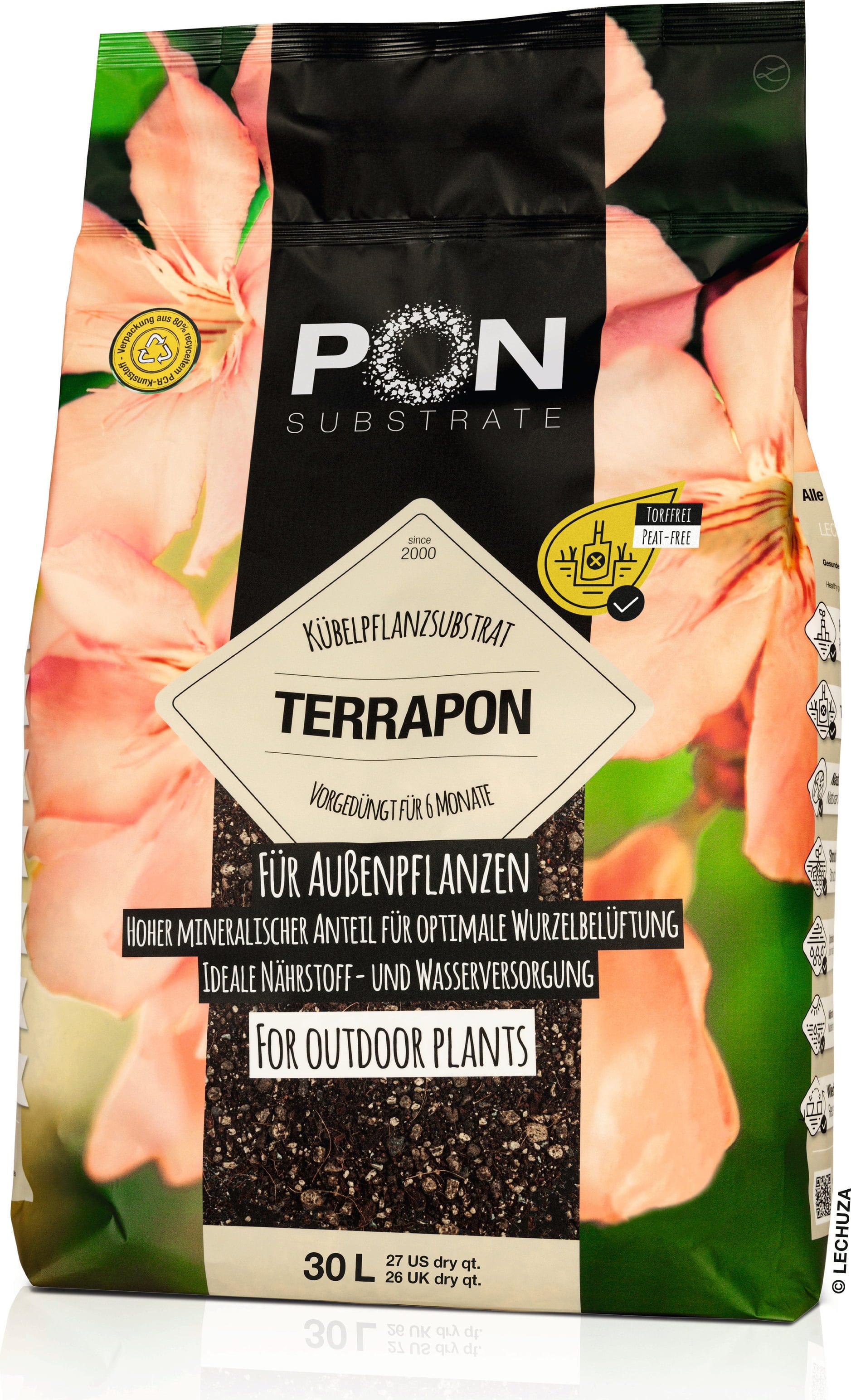Terrapon je ideálny spôsob, ako začať záhradnícku sezónu. Predhnojený substrát priebežne uvoľňuje živiny počas 6 až 8 mesiacov, aby vaše kvitnúce rastliny zostali dlhodobo vitálne. Vysoká drenážna kapacita zabraňuje hnilobe koreňov a zaručuje, že o vaše rastliny v kvetináčoch bude dobre postarané aj v premenlivom počasí.