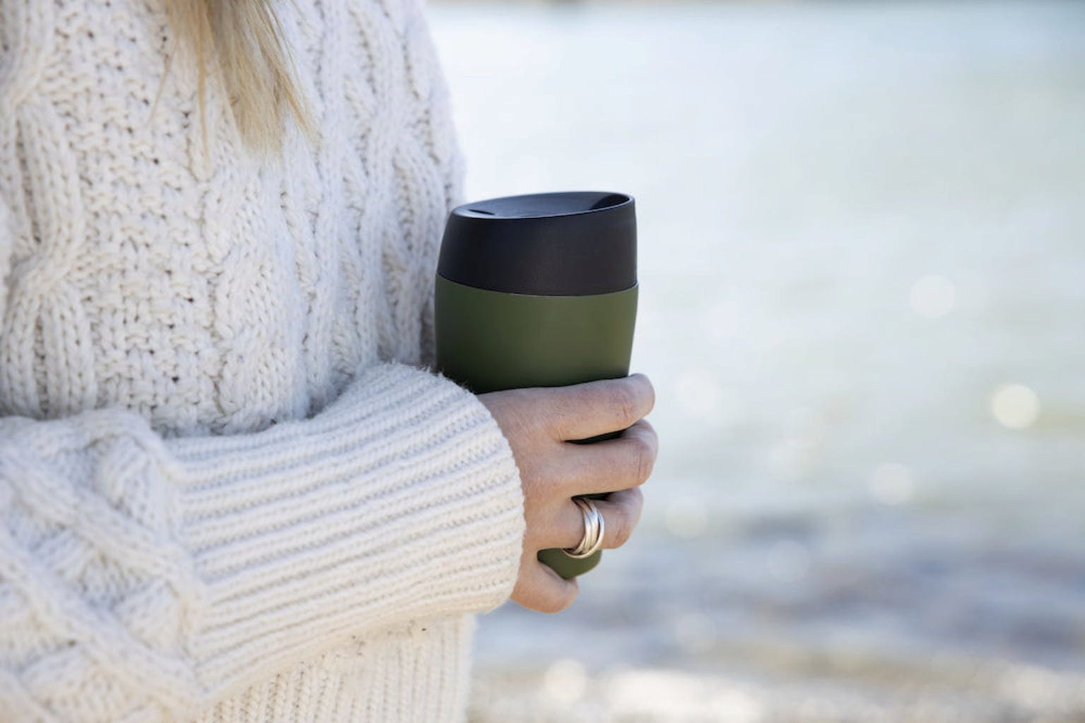 sagaform Pohár do auta s tlakovým vekom, malý, green