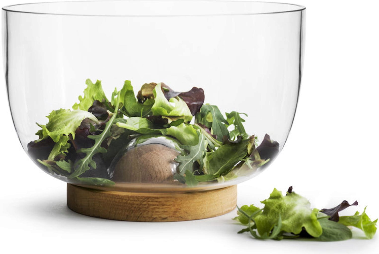 Kombinácia skla a masívneho dreva dodáva tejto servírovacej mise jedinečný šarm. Je ideálna na servírovanie príloh a šalátov, ako aj na prezentáciu ovocia a na stôl vždy prinesie veľmi osobitý štýl.