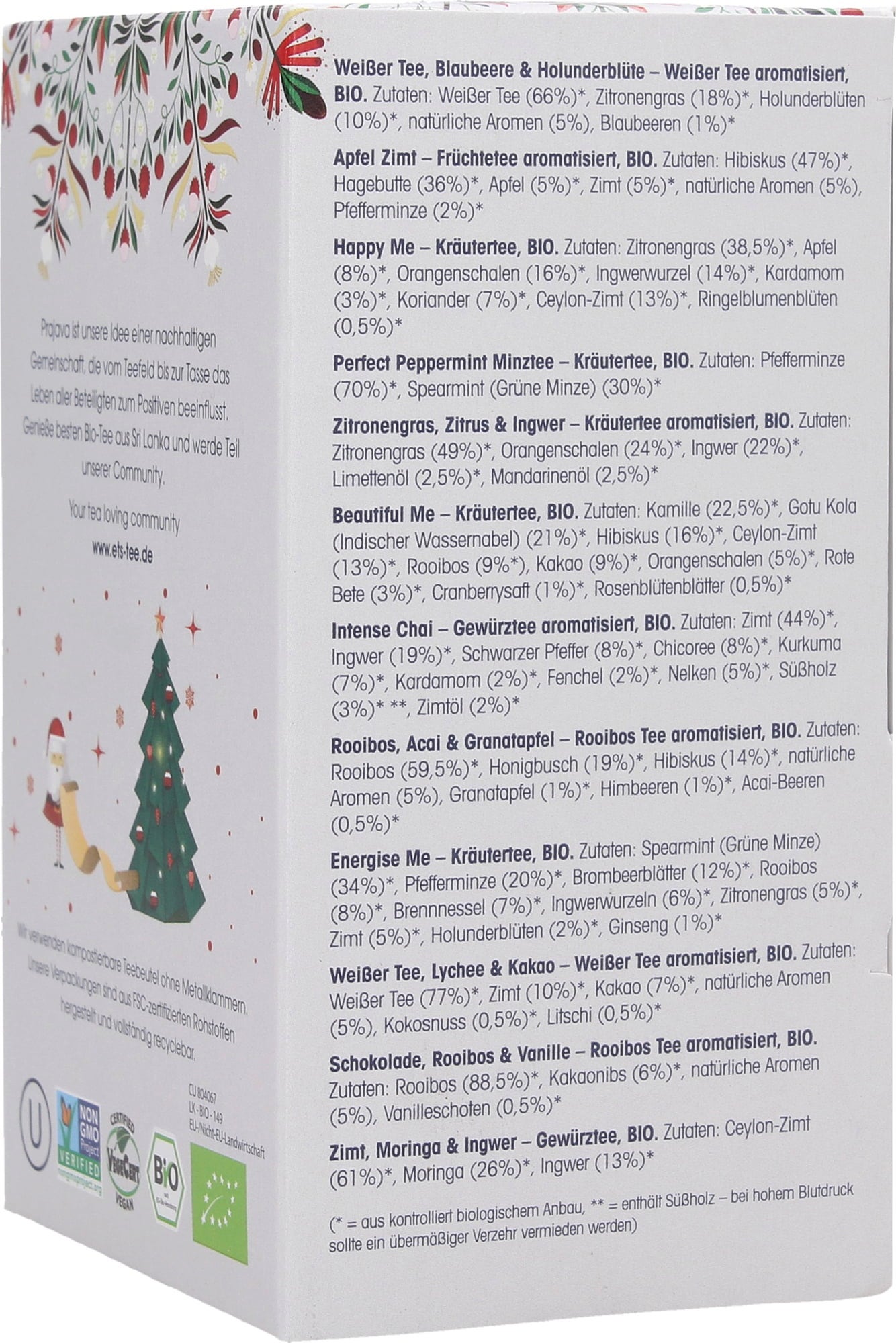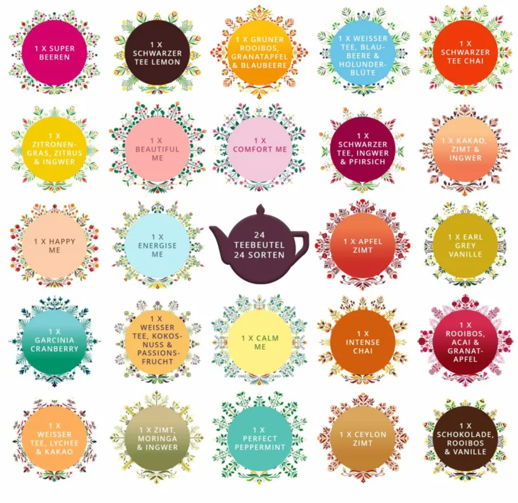 24 čajových kreácií z certifikovaného ekologického pestovania. Dokonalý spôsob, ako sa naladiť na Vianoce s nádhernými chvíľami pôžitku. Jemné superpotravinové ingrediencie ako kurkuma, guduchi a gotu kola sa postarajú o modernú chuť čaju.