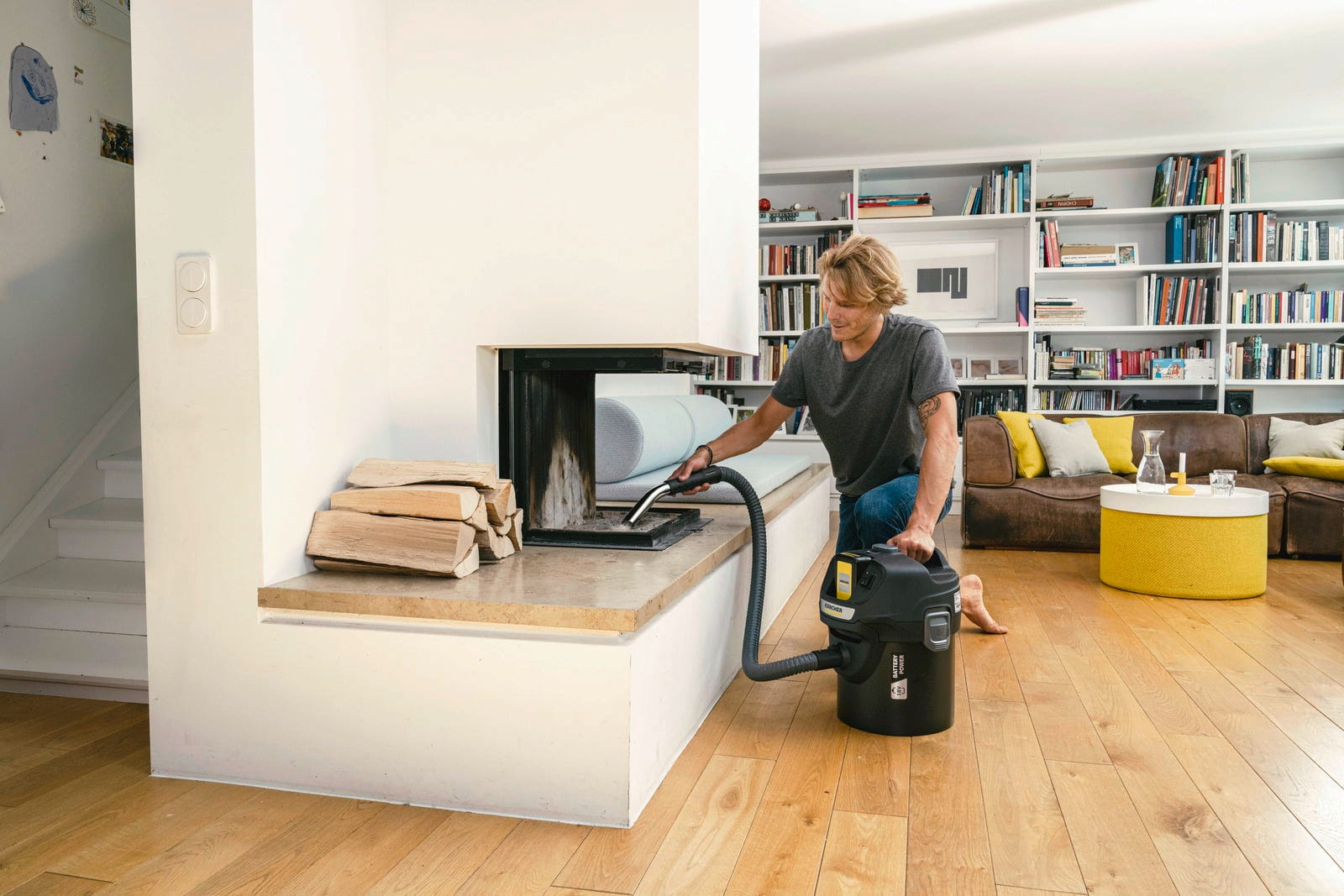 Robustná kovová nádoba a nehorľavé komponenty zabezpečujú bezpečný zber zvyškov popola. Plochý skladaný filter s predsunutým filtrom na hrubé nečistoty z kovu zadržiava jemný prach a chráni filtračný systém. Vďaka tomu zostáva sací výkon konštantný aj pri odstraňovaní popola a sadzí zo spaľovacích komôr alebo grilovacích komôr.