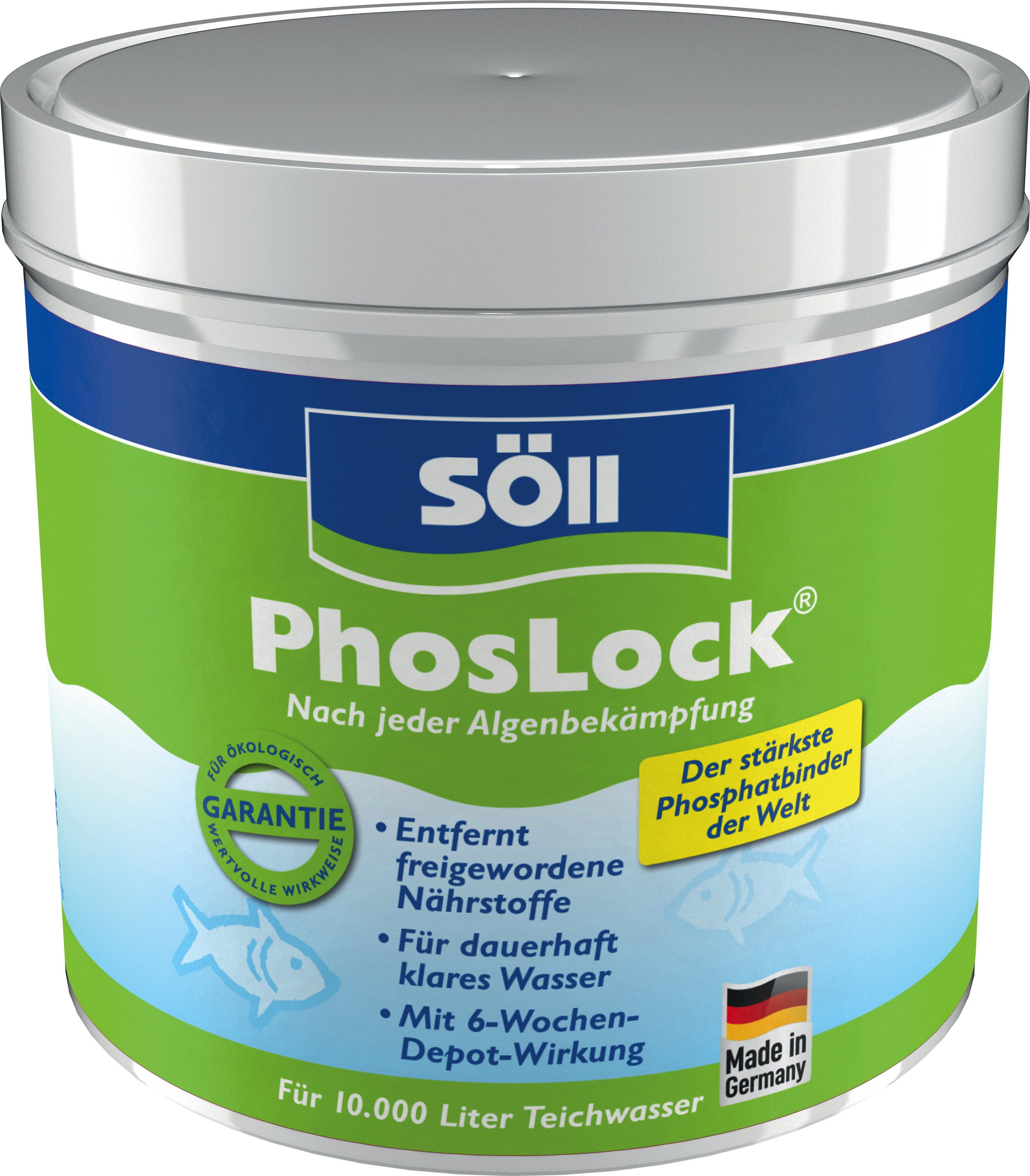 Prípravok PhosLock je podľa spoločnosti Söll najsilnejším viazačom fosfátov na svete. Jeho minerálne zloženie neobsahuje žiadne ťažké kovy a pri správnej aplikácii a dávkovaní je neškodný pre ryby, rastliny a ostatných obyvateľov jazierka. PhosLock zabraňuje spätnému uvoľňovaniu živín z jazerného kalu tým, že viaže fosfát do minerálu, ktorý nie je rozpustný vo vode.