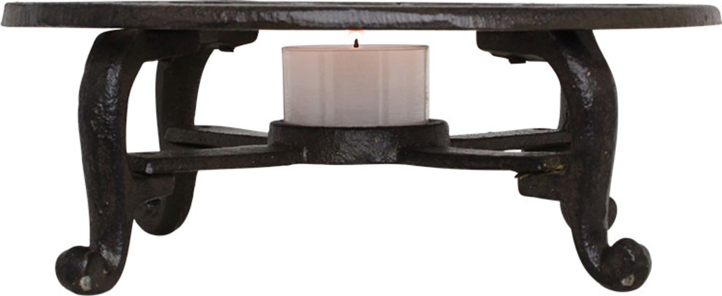 Tento rustikálny trojnožkový podstavec vyrobený z pevnej liatiny je navrhnutý tak, aby udržiaval nápoje a jedlo teplé dlhší čas. Priehlbina v strede poskytuje priestor na čajovú sviečku. Na tomto trojnožci je možné dekoratívne vystaviť aj žiaruvzdorné nádoby, ako sú hrnce alebo čajníky.