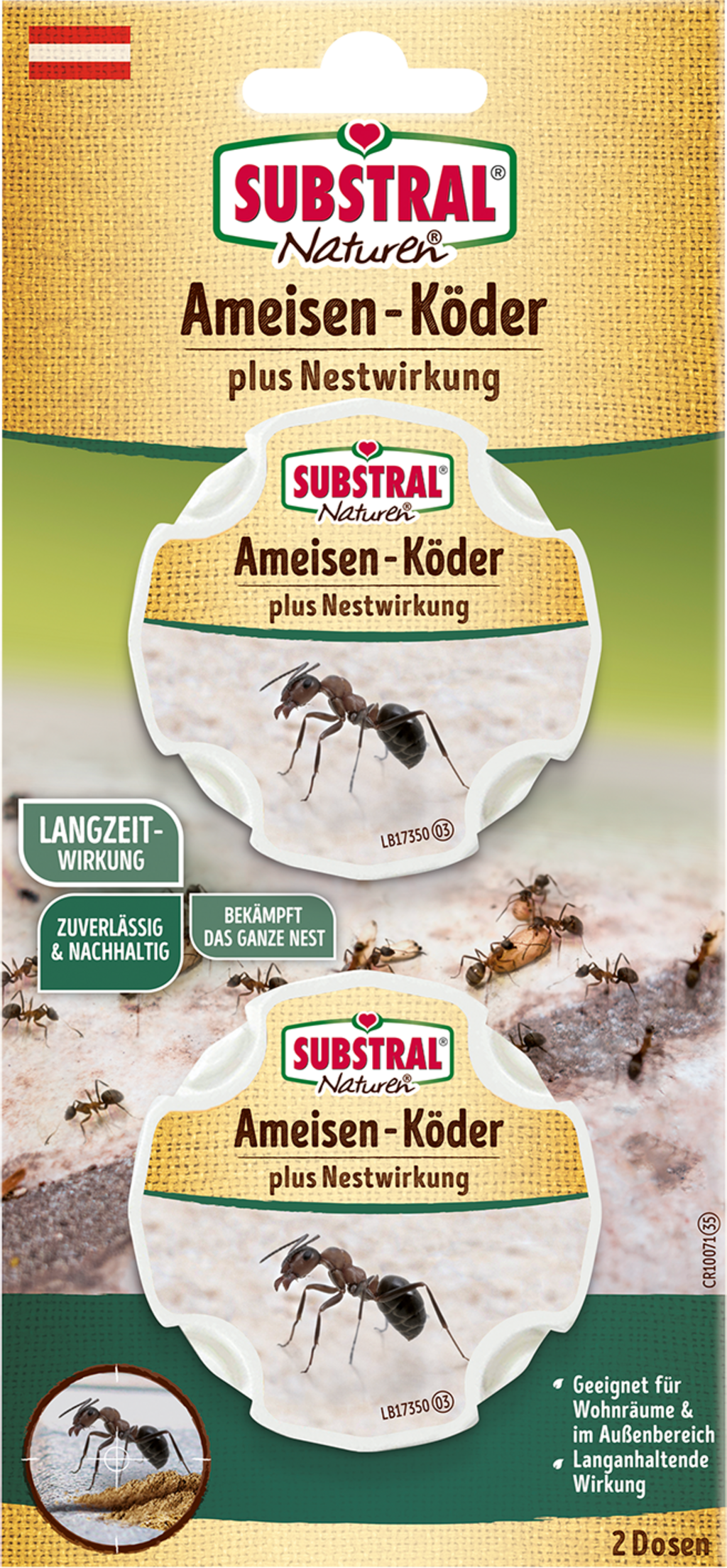S touto jednoducho použiteľnou návnadou na mravce môžete efektívne chrániť vnútorné a vonkajšie priestory, ako sú terasy, pred mravcami. Silný lákavý účinok návnady spôsobuje, že mravce vlezú do dózy s návnadou, tam prijmú účinnú látku, následne ju odnesú do svojho hniezda a nakŕmia ňou svoje mláďatá. Takto je zaručený udržateľný účinok.